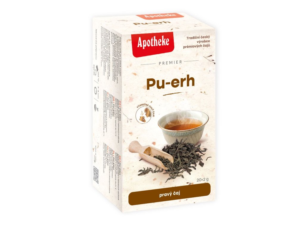 Čaj Pu-erh je v Číně znám a oblíben již odnepaměti. Je pěstován v provincii Yun-nan a připravován ze zelených listů, které jsou poté fermentovány, dokud nezískají červenohnědou barvu s jemnou typicky zemitou příchutí. Čaj pomáhá při kontrole váhy, podporuje degradaci lipidů, je přirozeným zdrojem antioxidantů, které pomáhají ochraňovat tělo před škodlivými účinky volných radikálů. Pomáhá osvěžit tělo a mysl. Zařazení: Černý čaj, porcovaný v nálevových sáčcích. Složení: Černý čaj pravý. Příprava: 1 nálevový sáček zalijte 250 ml vroucí vody a nechte 3-5 min vyluhovat. Doporučené dávkování: 1-3 šálky denně. Skladování: Skladujte v suchu při teplotě do 25 °C. Hmotnost netto: 40 g Výrobce: MEDIATE, s.r.o., Dolní Libchavy 325, 561 16 Libchavy, ČR