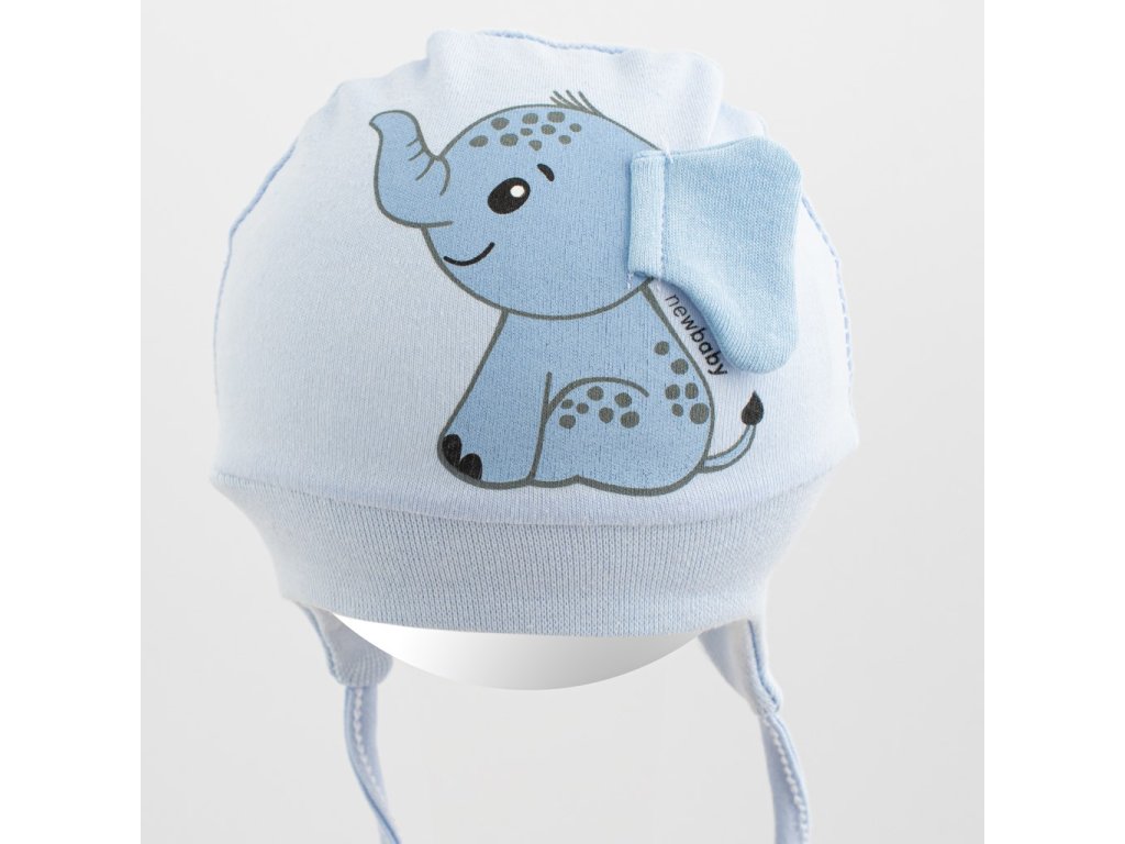 Bavlněná kojenecká čepička New Baby Happy Elephant blue - vel. 56/62