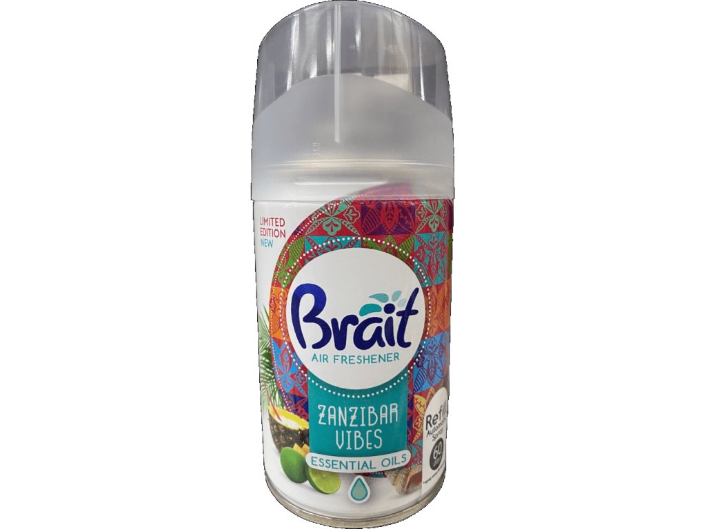 Brait Osvěžovač Vzduchu Náhrada Zanzibar Vibes 250 ml je náplň do automatických osvěžovačů vzduchu, která vás přenese na exotické ostrovy. Tato náplň je speciálně navržena tak, aby neutralizovala nepříjemné pachy a zanechala ve vzduchu svěží a exotickou vůni, která připomíná teplé letní dny a vzdálené krajiny. Tato náplň je kompatibilní s většinou automatických osvěžovačů vzduchu a nabízí dlouhodobou svěžest a příjemnou atmosféru.