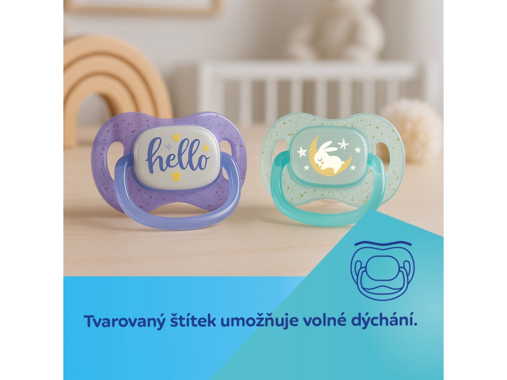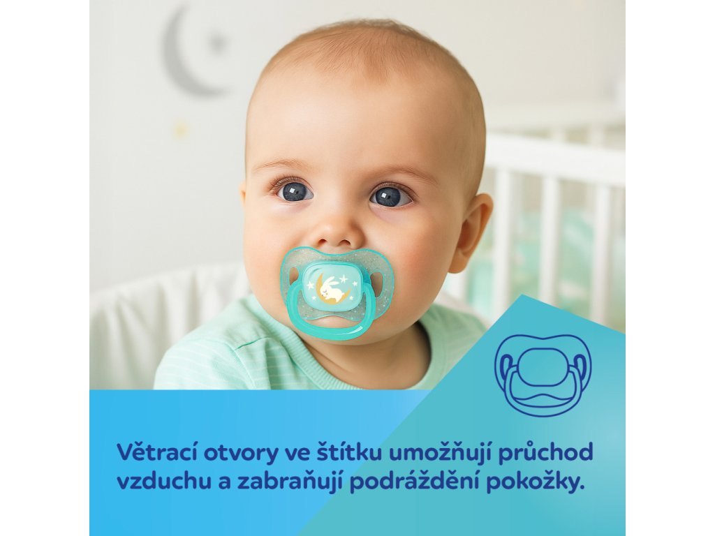 Svítící prvky ve tmě - usnadňují nalezení dudlíku v noci.