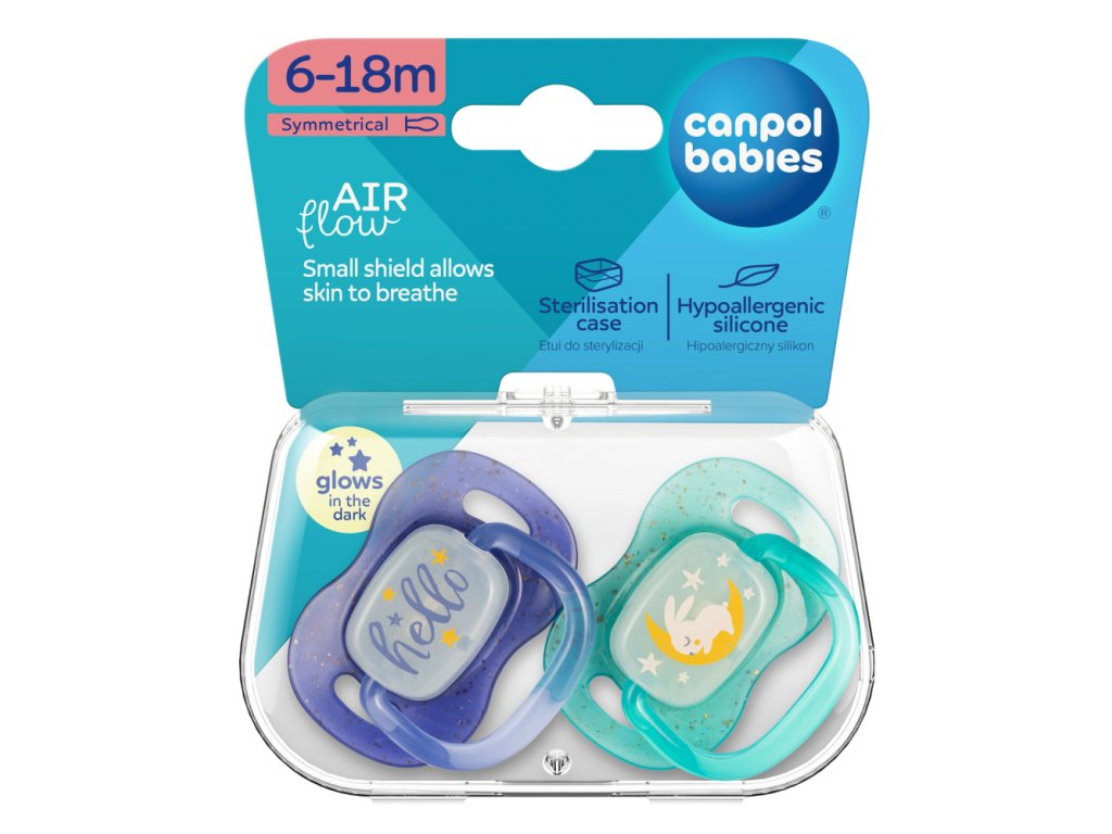 Canpol babies svítící dudlík z kolekce NIGHTGLOW přispívá k uvolnění a uklidnění vašeho miminka.