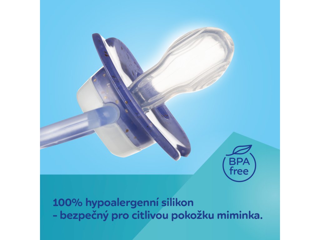 100% bezpečný, hypoalergenní silikon – bez chuti a zápachu, což usnadňuje přijetí dudlíku.