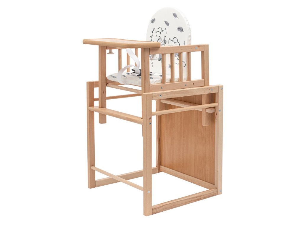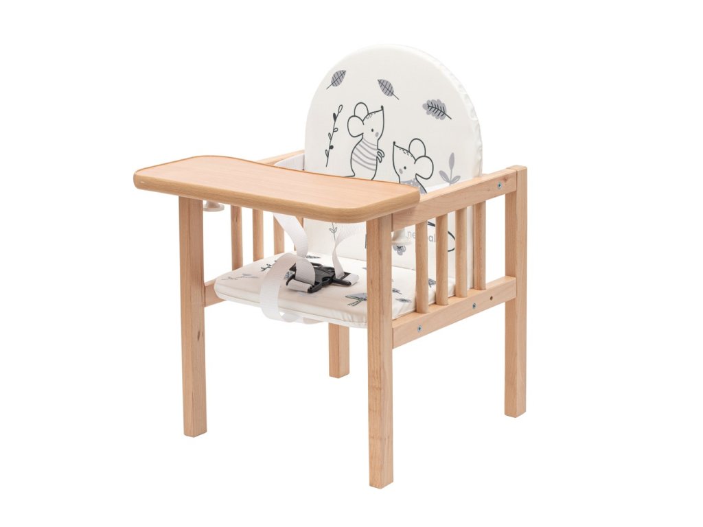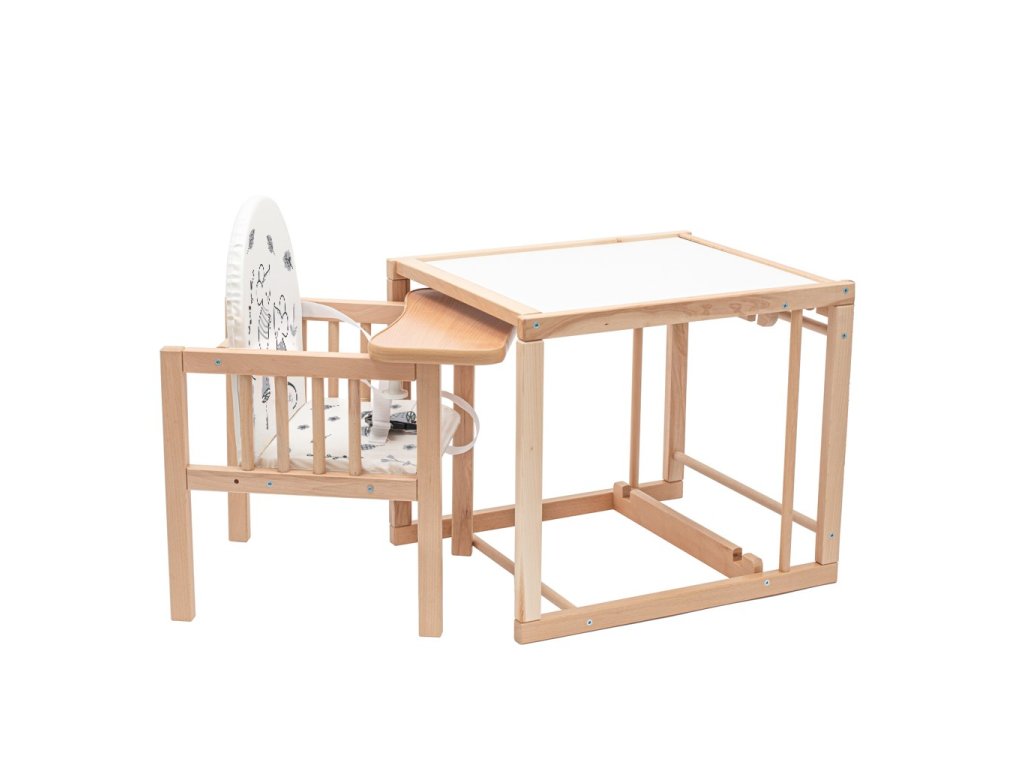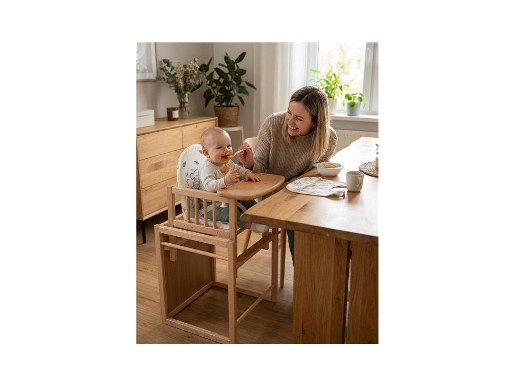 Multifunkční jídelní židlička české značky NEW BABY je navržena s maximálním důrazem na bezpečnost a kvalitu. Vyrobena z pevného bukového dřeva, poskytuje vysokou stabilitu a dlouhou životnost. Všechny použité materiály a nátěry splňují přísné bezpečnostní normy pro dětský nábytek a jsou zcela nezávadné.