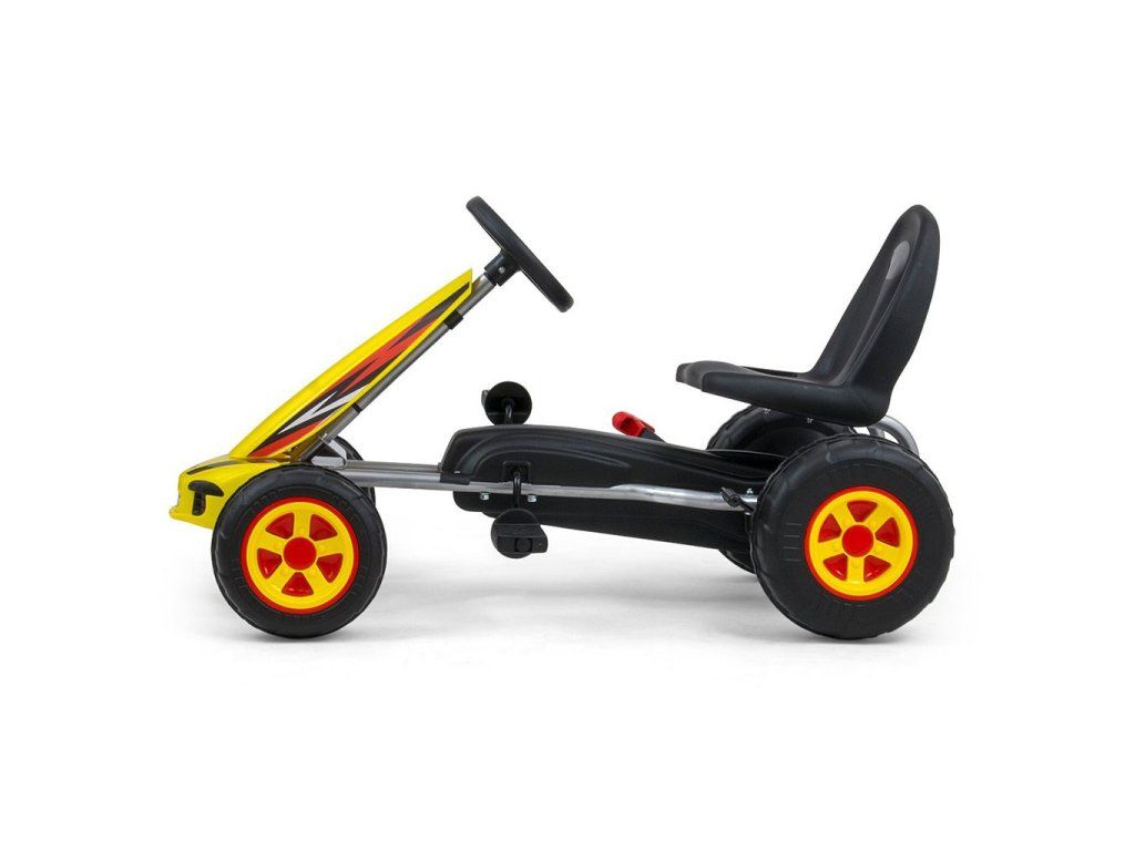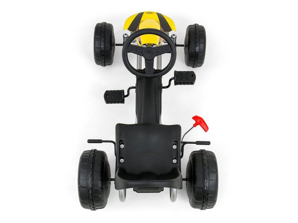Šlapací motokára Viper má lehkou kovovou konstrukci a díky velkým plastovým kolům umožňuje pohodlnou jízdu i na nerovném povrchu. Pevný rám je navíc opatřen dodatečnou výztuží. Ruční brzda zajišťuje bezpečné zastavení. Vzdálenost sportovně tvarovaného sedadla lze nastavit od volantu ve dvou stupních. Díky možnosti nastavení sedadla od volantu motokára "poroste" s vaším dítětem.