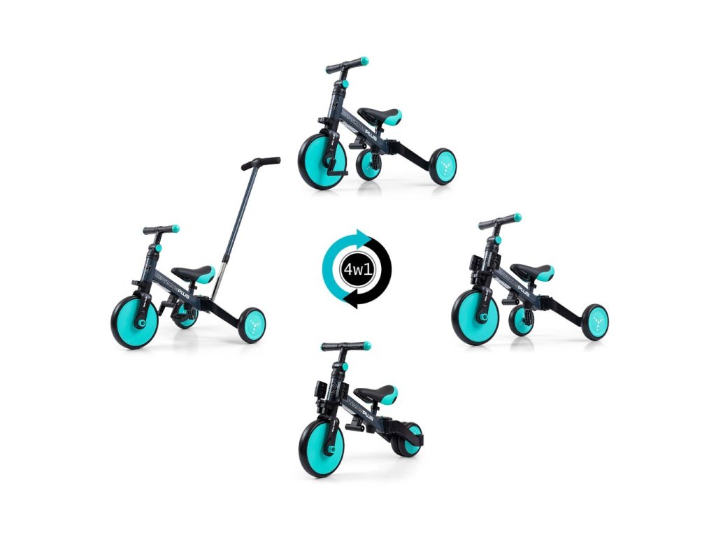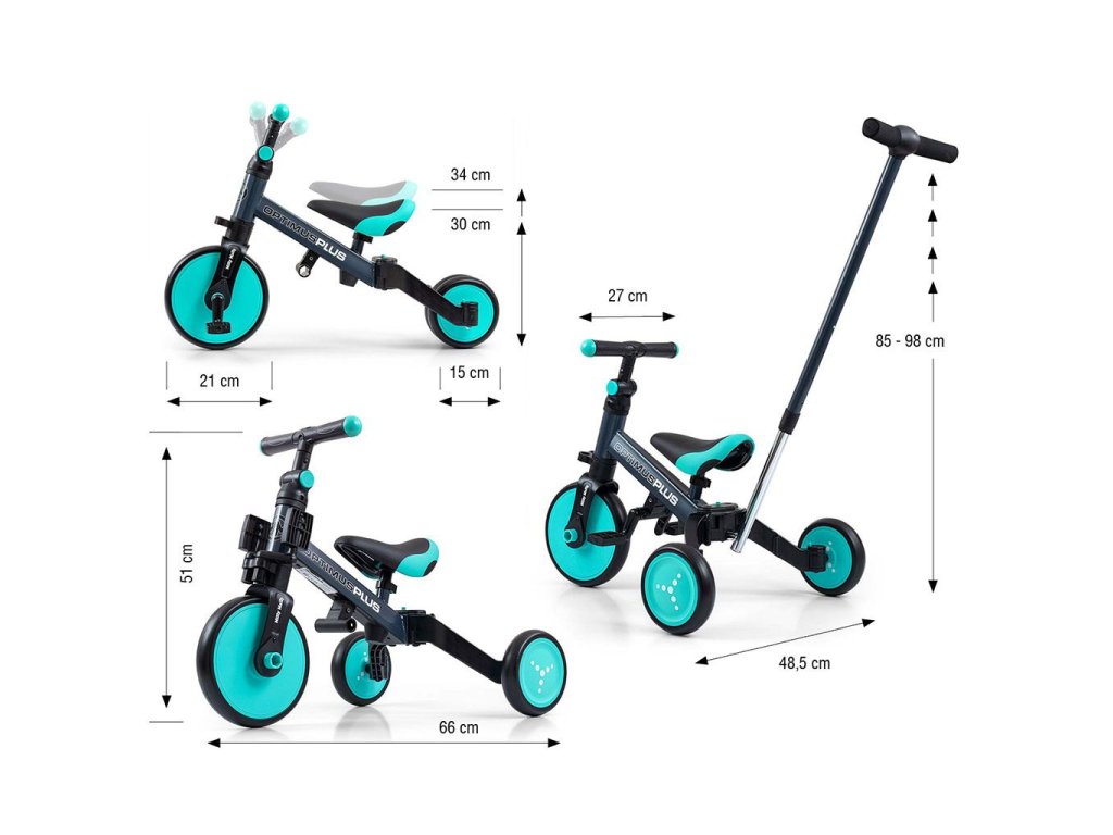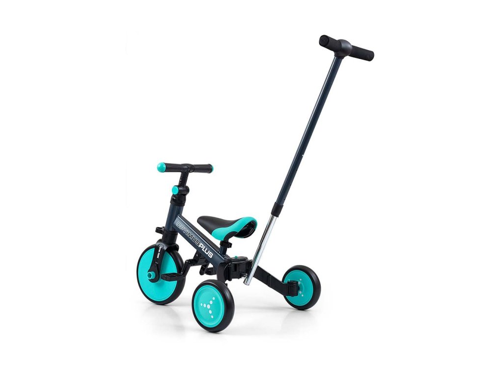 Dětská tříkolka 4v1 Milly Mally Optimus Plus s vodící tyčí mint