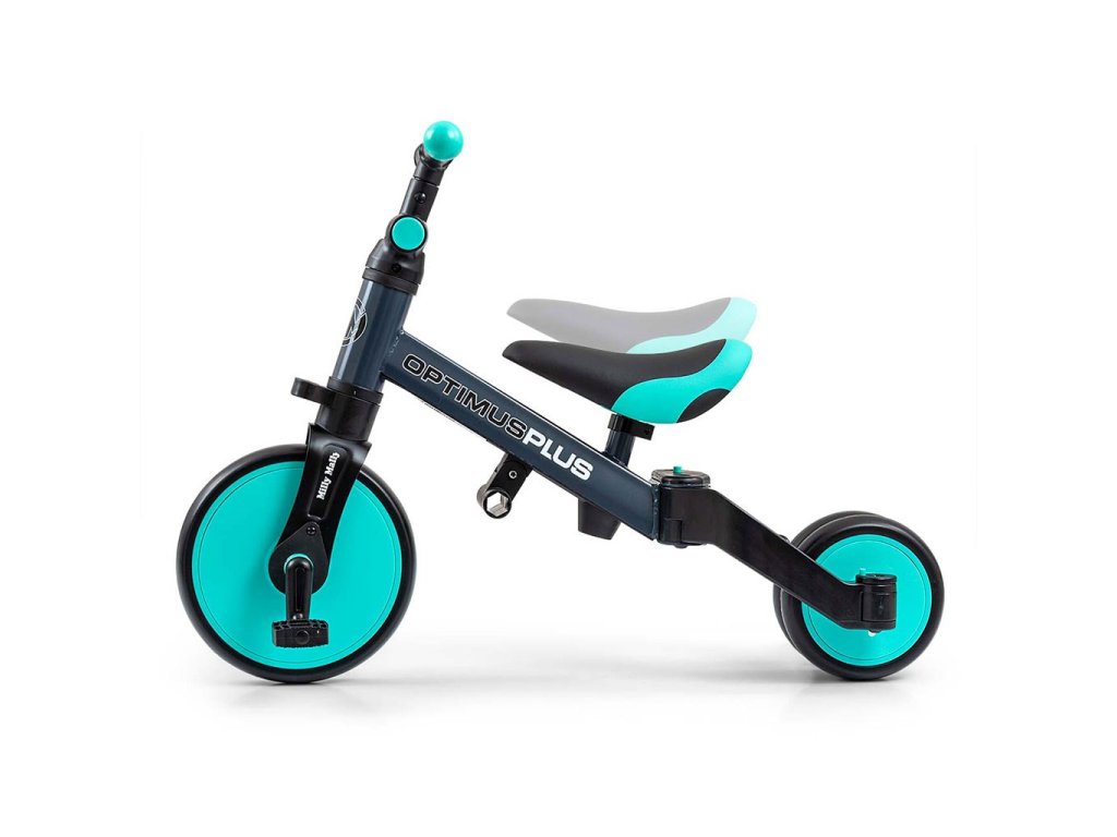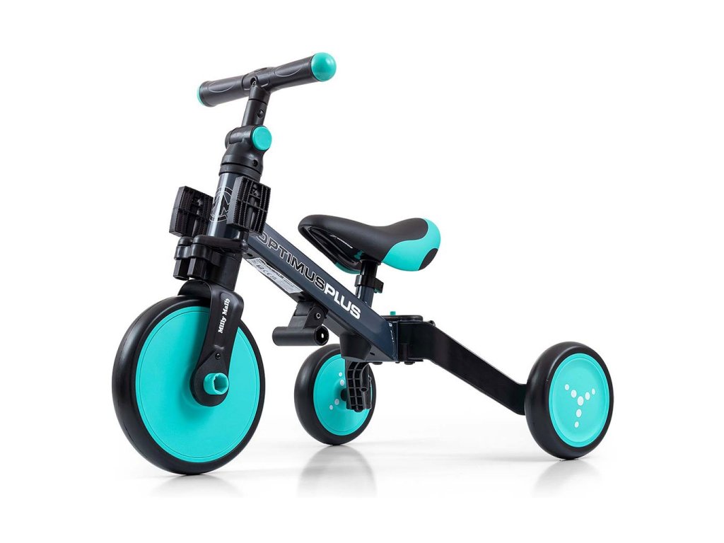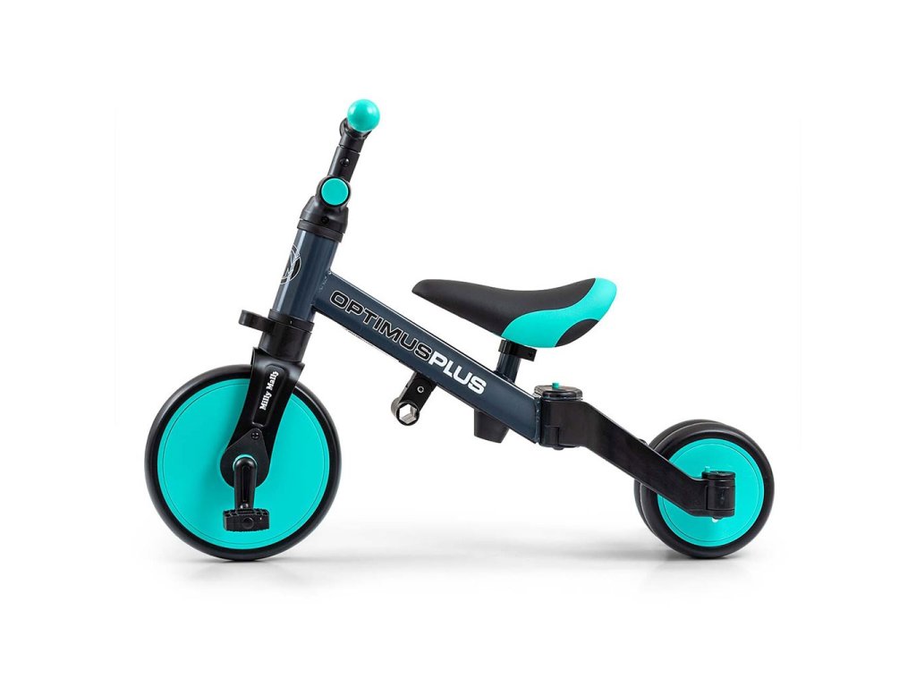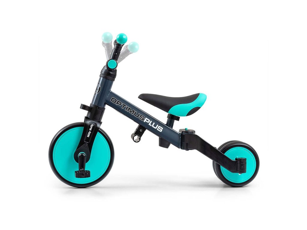 Univerzální dětská šlapací tříkolka Milly Mally 4v1 Optimus byla navržena tak, aby se stala tím nejlepším co můžete nabídnout svému malému závodníkovi. Díky stabilní konstrukci poskytuje dítěti maximální úroveň bezpečnosti a tímto mu usnadňuje získávání nových dovedností. Největší výhodou této tříkolky je její variabilita. Jakmile dítě získá základy jízdy, připojíme pedály nebo jí během okamžiku změníme na klasické jednostopé odrážedlo. Pěnová kola výborně absorbují rázy, poskytují dobrou přilnavost, zajistí pohodlí během jízdy a neunaví vašeho malého závodníka. Dostatečný rozvor kol poskytuje mimořádnou stabilitu, bezpečnost během používání doma i venku. Doraz nedovolí přetočení řídítek.