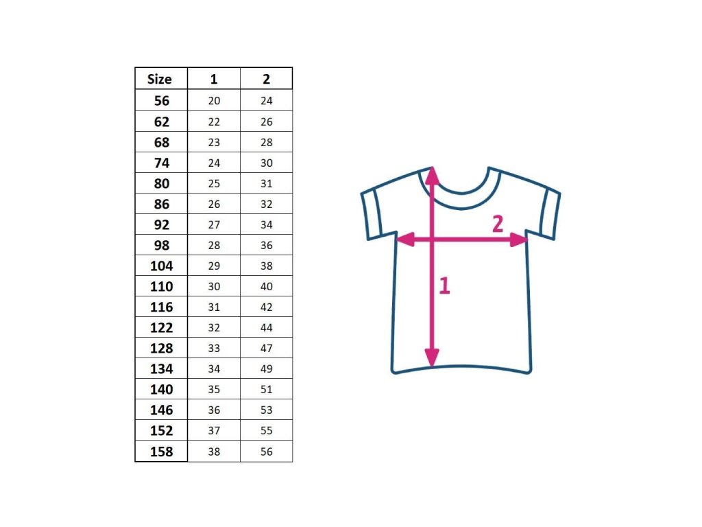 Praktické a kvalitní bavlněné tričko s krátkým rukávem české značky New Baby Kindergarten. Bavlněné tričko je velmi pohodlné už jen tím, že je vyrobeno z kvalitní bavlny, bez zapínání, s jemným lemem okolo krčku. Lem nesmí tlačit, obepínat a tričko se musí snadno oblékat přes hlavičku. Tričko je velmi vhodné na běžné dětské činnosti na doma a do školky. Složení: 100% bavlna. OEKO-TEX STANDARD 100. Rozměrová tabulka-poslední foto.Doplňkové parametry