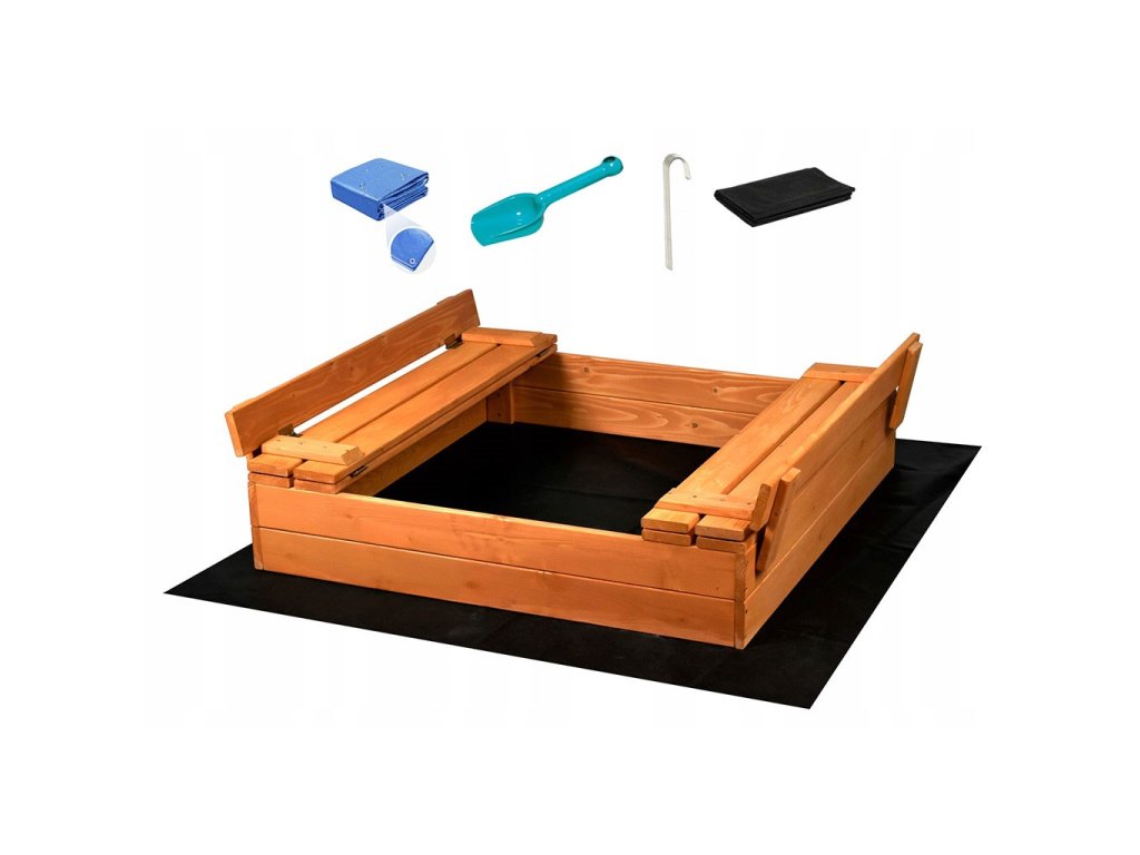 Dětské dřevěné pískoviště s poklopem a lavičkami Baby Mix 100x100 cm