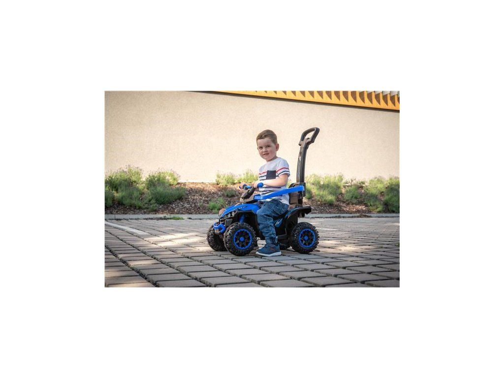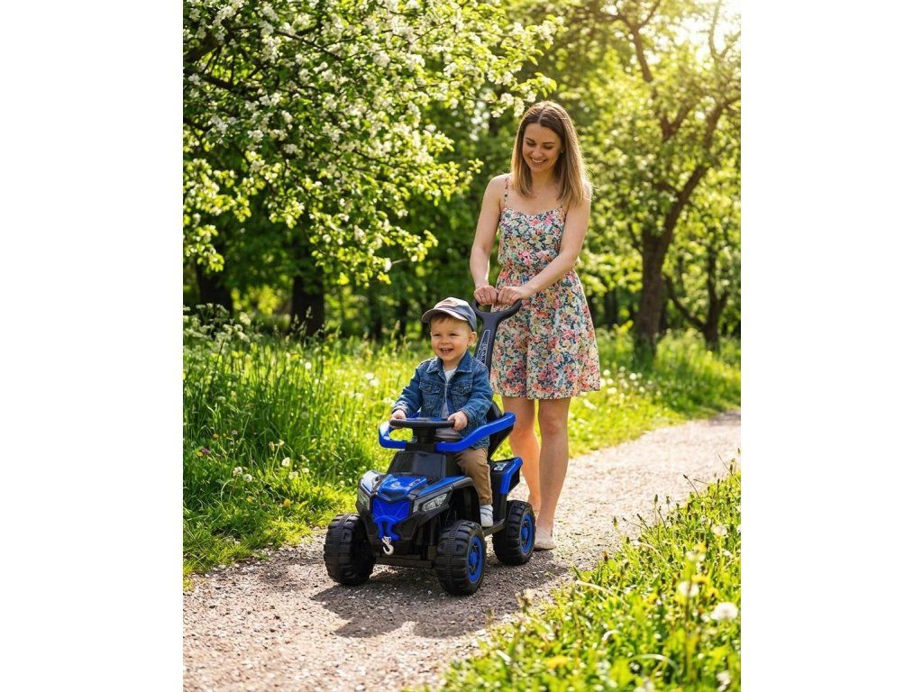 Dětské elektrické odrážedlo Baby Mix Ruggy s vodící tyčí modré