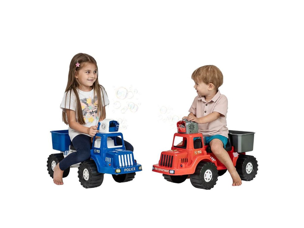 Hasičské odrážedlo s bublifukem Bayo dokáže vytvořit nekonečné množství bublin. Na kabině vozu je bublifuk, ze kterého po nalití mýdlového roztoku a roztočení klikou vylétají bubliny.