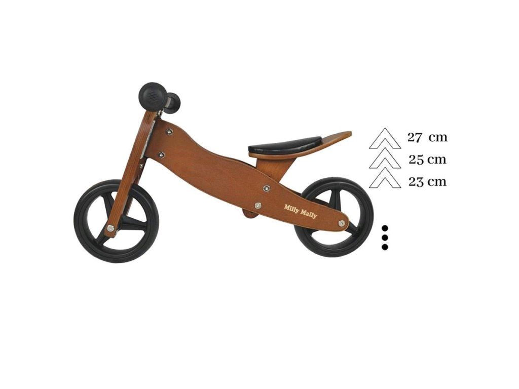 Dětské multifunkční dřevěné odrážedlo Milly Mally JAKE je ideální pro děti, které se právě začínají učí jezdit na kole a přitom nejsou schopné udržet rovnováhu na dvou kolech. Výhodou odrážedla JAKE je, že z tříkolky se snadno stane odrážedlo na dvou kolech.Charakteristika: