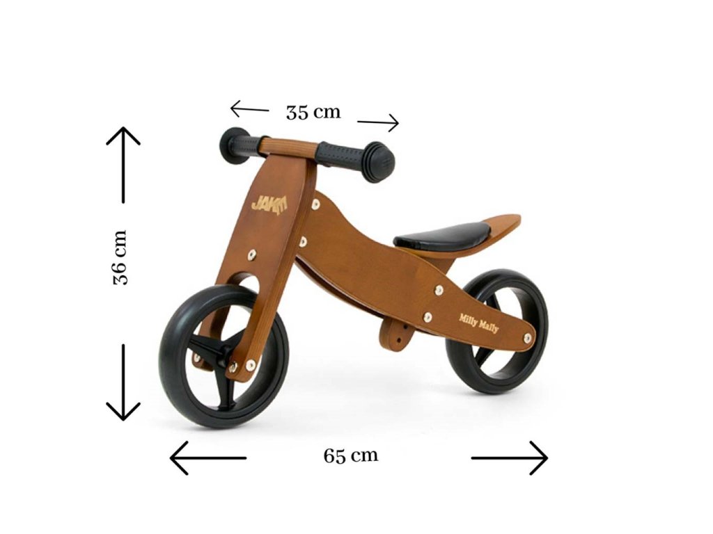 Dětské multifunkční dřevěné odrážedlo Milly Mally JAKE je ideální pro děti, které se právě začínají učí jezdit na kole a přitom nejsou schopné udržet rovnováhu na dvou kolech. Výhodou odrážedla JAKE je, že z tříkolky se snadno stane odrážedlo na dvou kolech.Charakteristika: