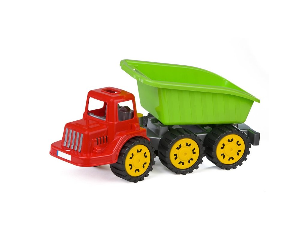 Dětské nákladní sklápěcí auto Bayo Chuck je třínápravový vůz s robustními koly, řízenou přední nápravou a sklápěcí korbou. Má zaoblené rohy a hrany pro větší bezpečnost dítěte a vyrobeno je z velmi kvalitního a nezávadného plastu.