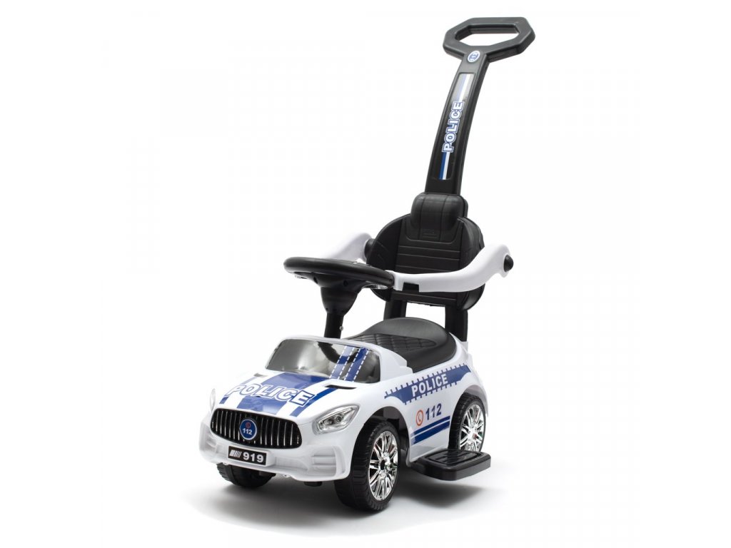 Dětské odrážedlo se zvukem a vodící tyčí Baby Mix POLICE bílé