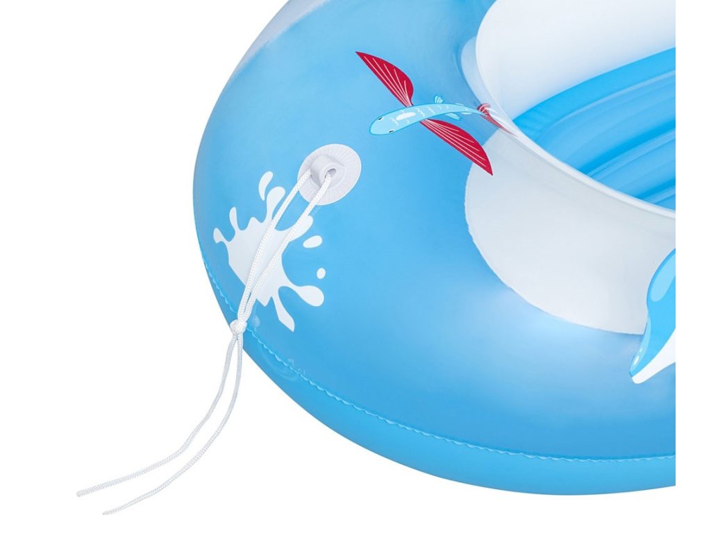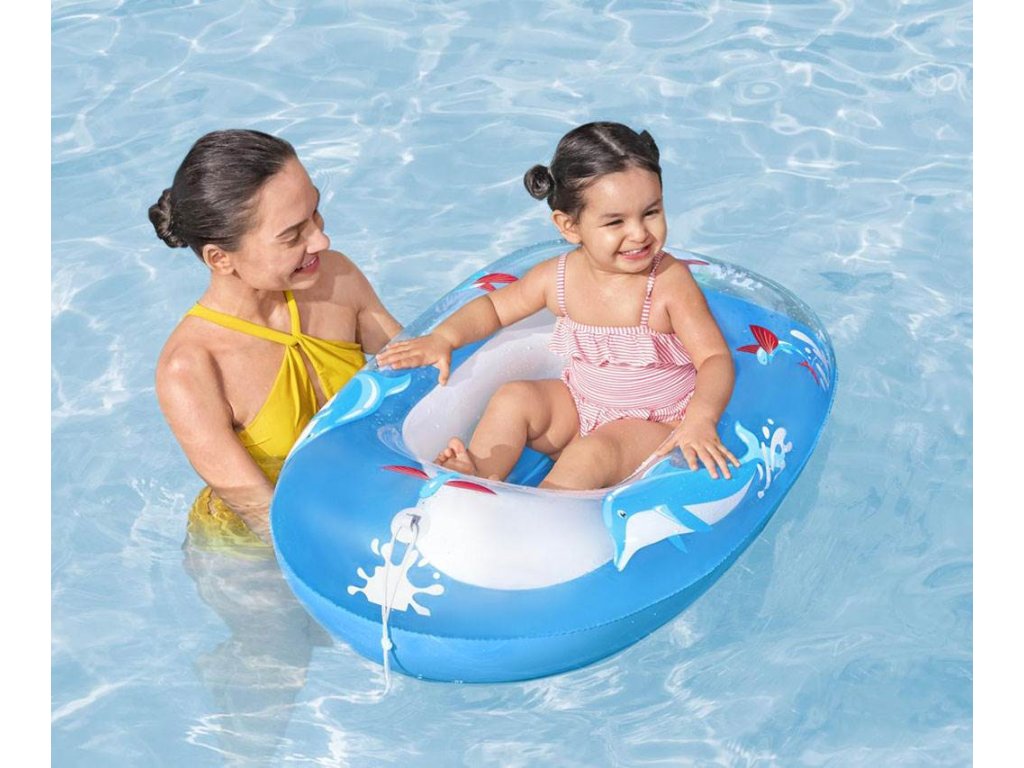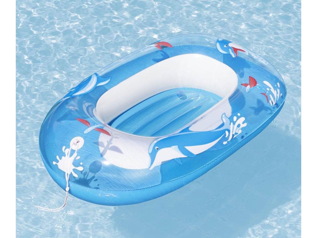 Dětský ponton je k dispozici ve 2 různých barvách, má nafukovací dno pro větší pohodlí, tažné lano se zabudovanými průchodkami a průhledné okno.