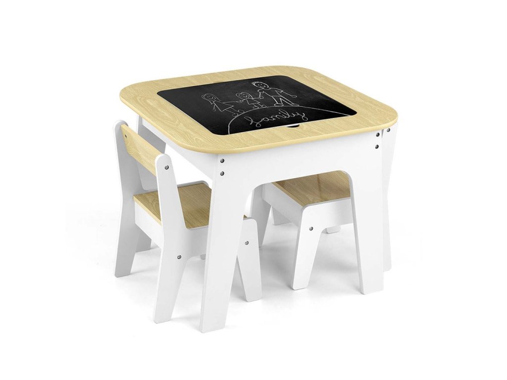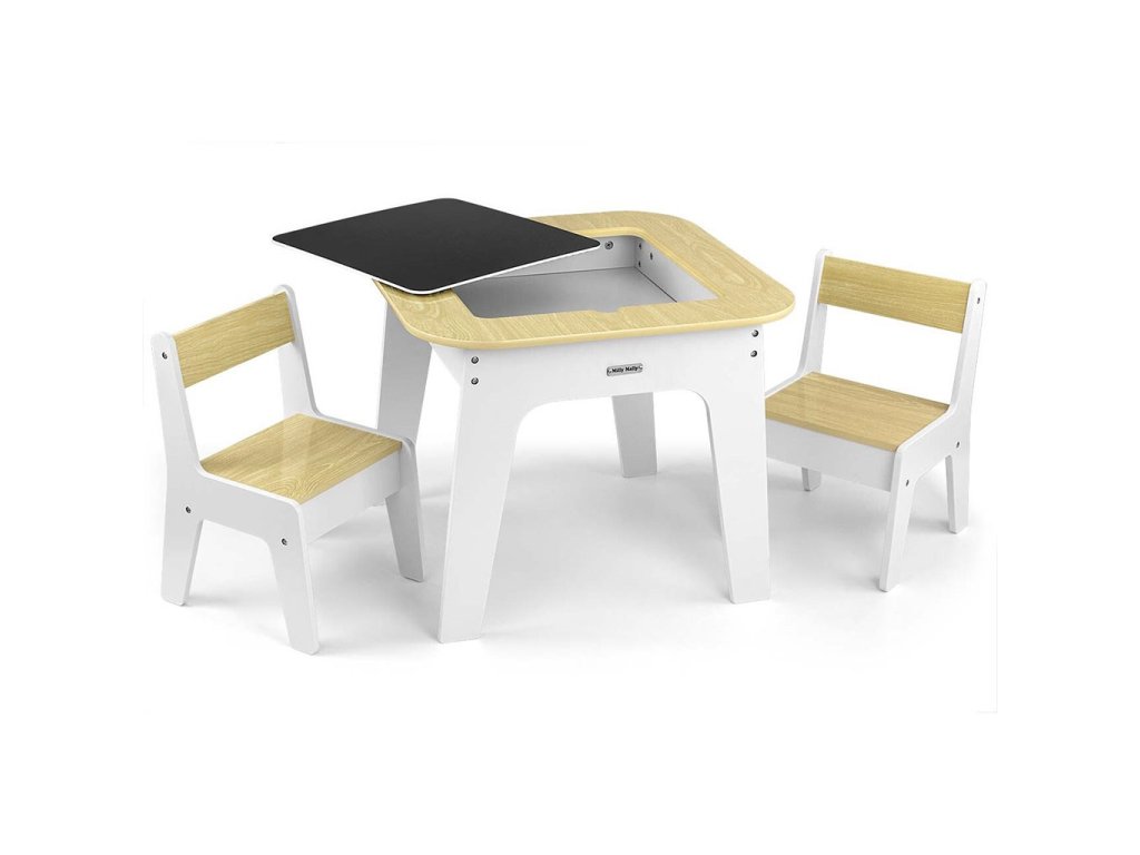 Dětská sada nábytku Olaf Blocks - stůl a dvě židličky je multifunkční komplet navržený tak, aby zajistil dětem pohodlí a prostor pro kreativní hraní a učení. Stůl s dvěma židličkami má decentní barevné provedení, které mu dodává moderní a estetický vzhled, hodící se do každého interiéru.