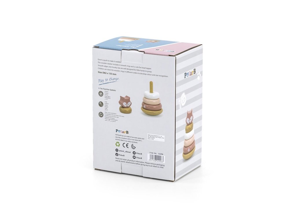 Vzdělávací pyramida od společnosti Viga je klasická hračka pro nejmenší, která vašemu dítěti poskytne zábavnou, zajímavou a kreativní hru. Sada v pastelových barvách obsahuje 5 diskových kostek různých velikostí, včetně jedné ve tvaru liščí hlavy. V základně je kolík, na který se dílky nasazují. Tato hračka je ideální pro batolata, která začínají stavět věže z kostek. Pyramida podporuje rozvoj koordinace ruka-oko, logického myšlení a navíc podporuje učení rozpoznávání barev. Zde je třeba zdůraznit vzdělávací hodnotu pyramidy s liškou.