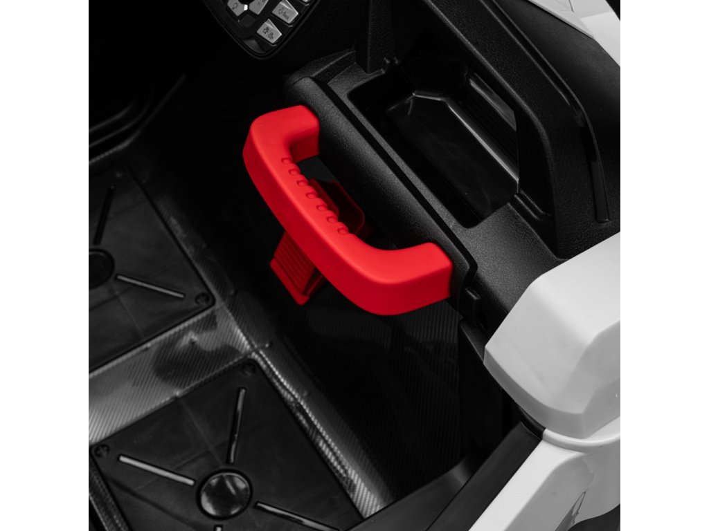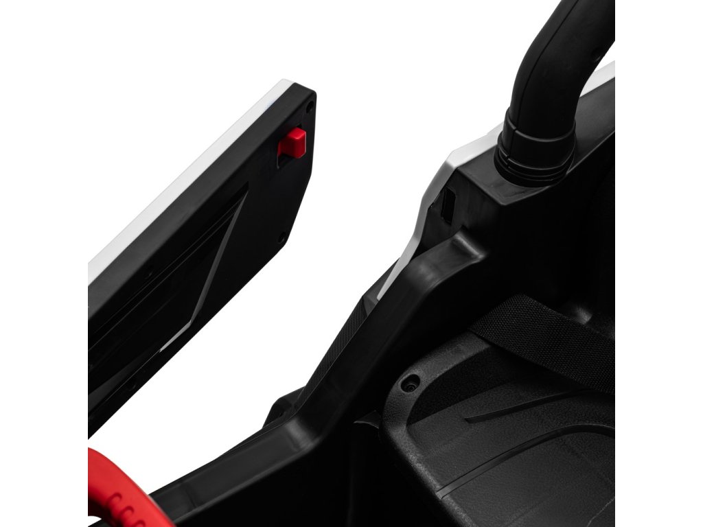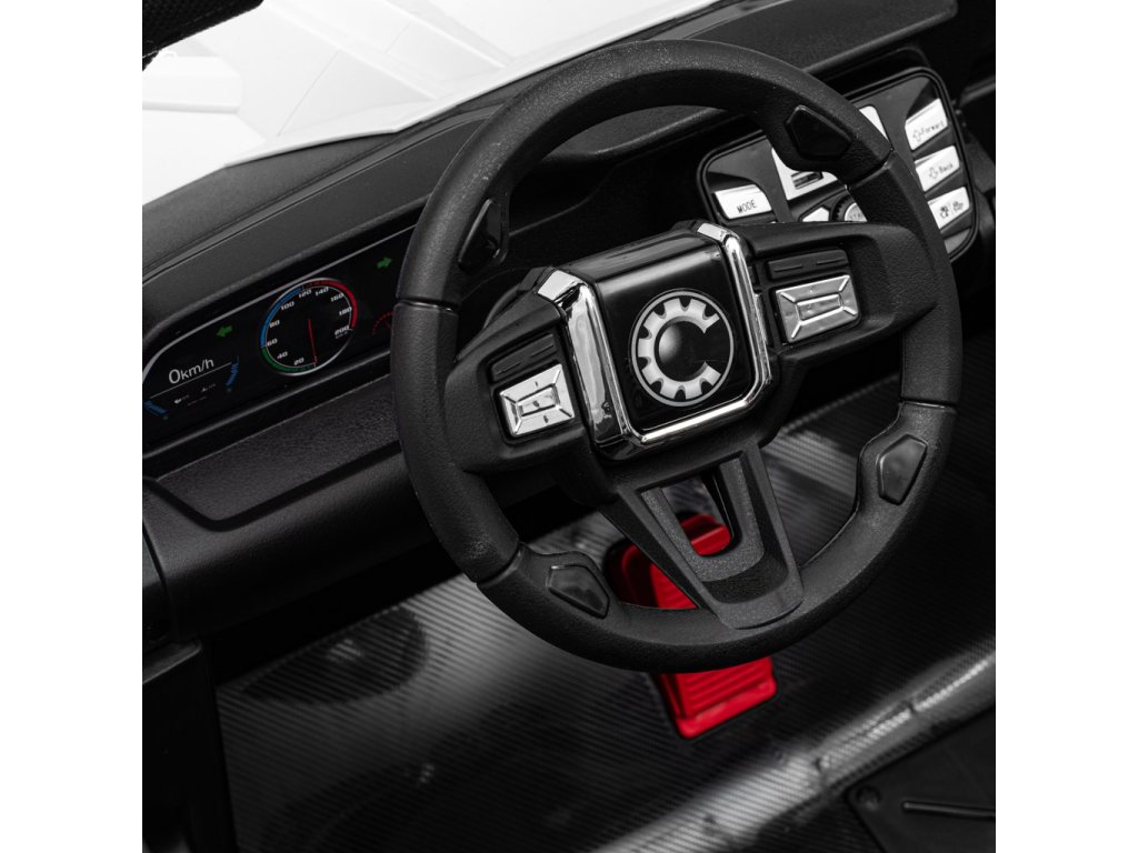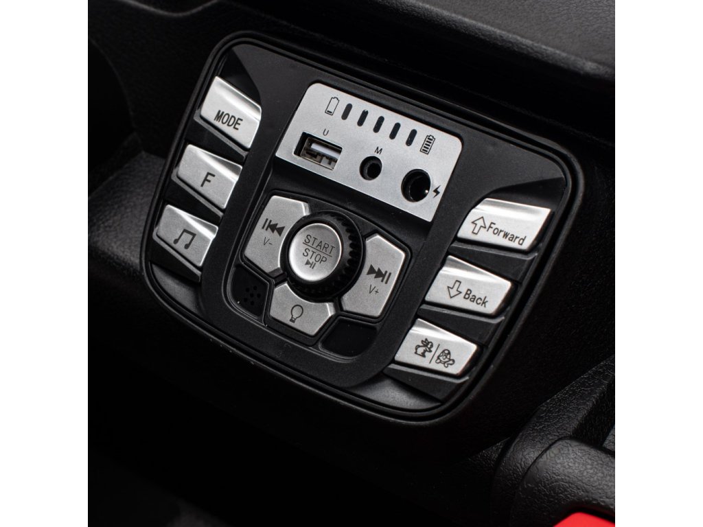 Elektrická autíčko má otevírání dveří z obou stran, startování pomocí tlačítka a hudební panel se vstupem USB, takže si dítě při jízdě bude moct poslechnout svou oblíbenou hudbu. Nechybí také ovládání hlasitosti hudby či předem nahrané melodie v autíčku pro ještě větší zábavu.