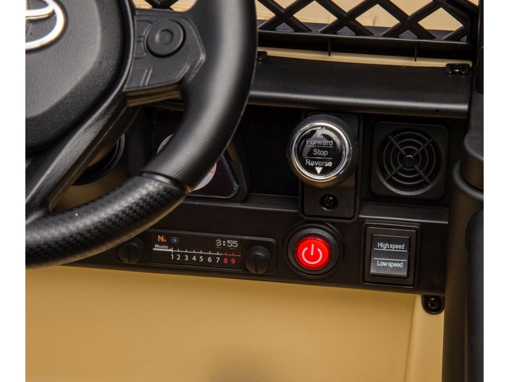 Licencované bateriové vozidlo TOYOTA FJ CRUISER je působivý terénní vůz. Bylo navrženo a vyrobeno z materiálů nejvyšší kvality. Díky vysoké pozornosti věnované i těm nejmenším detailům je vozidlo velmi oblíbené.