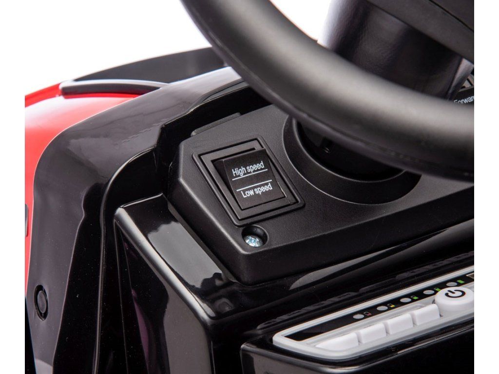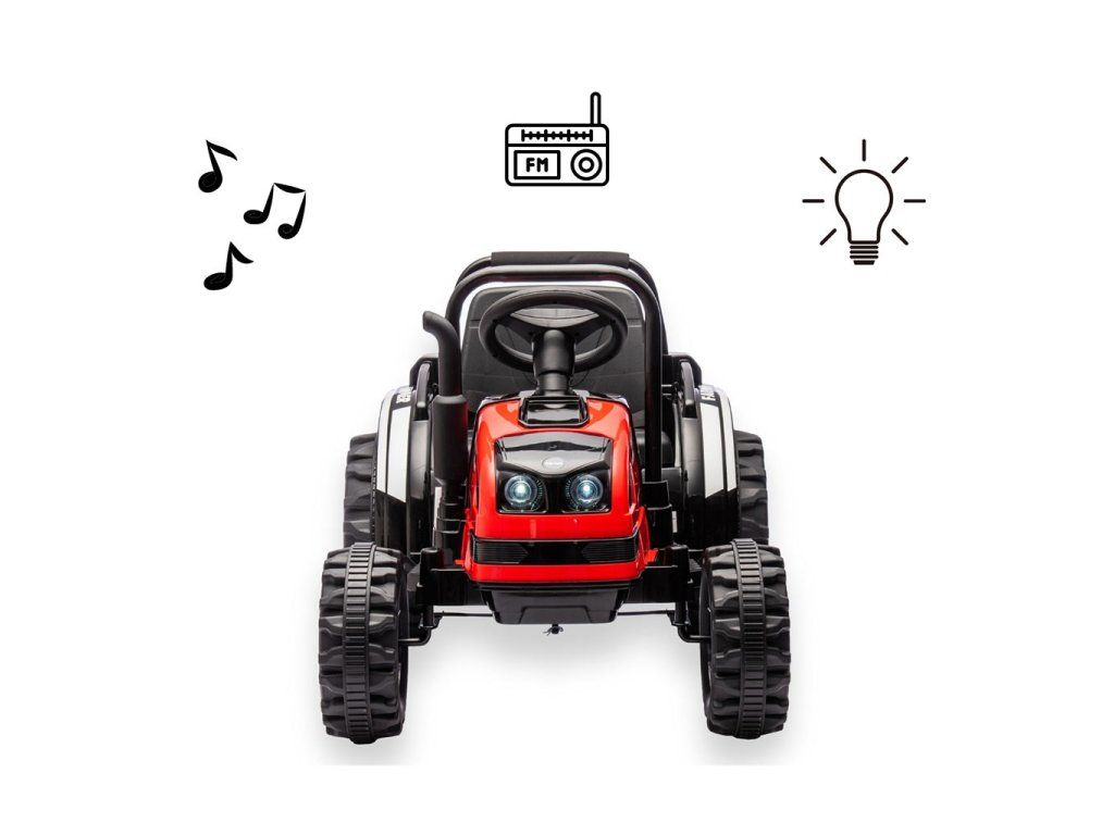 Jedná se o ideální vozidlo pro děti ve věku od 3 do 5 let. Traktor je dodáván s přívěsem pro další zábavu. Kovové bezpečnostní tyče vpředu a vzadu a imitace komína / výfuku, vrčivý zvuk motoru traktoru, to vše umožňuje malým řidičům popustit uzdu své fantazii a cítit se jako skuteční traktoristé. Vypínač aktivuje realistický vrčivý zvuk motoru traktoru, zatímco tlačítko současně vypíná vozidlo. Dva motory umístěné v traktoru dosahují průměrné rychlosti 3-5 km/h.