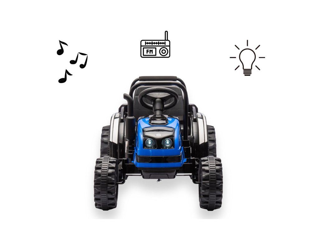 Jedná se o ideální vozidlo pro děti ve věku od 3 do 5 let. Traktor je dodáván s přívěsem pro další zábavu. Kovové bezpečnostní tyče vpředu a vzadu a imitace komína / výfuku, vrčivý zvuk motoru traktoru, to vše umožňuje malým řidičům popustit uzdu své fantazii a cítit se jako skuteční traktoristé. Vypínač aktivuje realistický vrčivý zvuk motoru traktoru, zatímco tlačítko současně vypíná vozidlo. Dva motory umístěné v traktoru dosahují průměrné rychlosti 3-5 km/h.