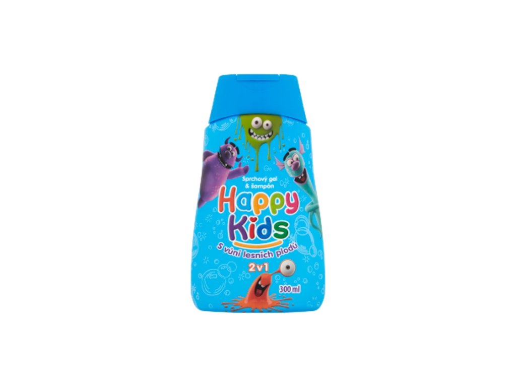 HAPPY KIDS sprchový gel a šampón s vůní lesních plodů Osvěžující chlapecký sprchový gel a vlasový šampon 2v1 s příjemnou ovocnou vůní, vhodný pro každodenní používání na tělo i vlasy. Pro-vitamin B5 a panthenol jemně pečuje o dětskou pokožku a vláskům dodává sílu a lesk. Po mytí zanechává příjemný pocit čistoty a svěžesti.