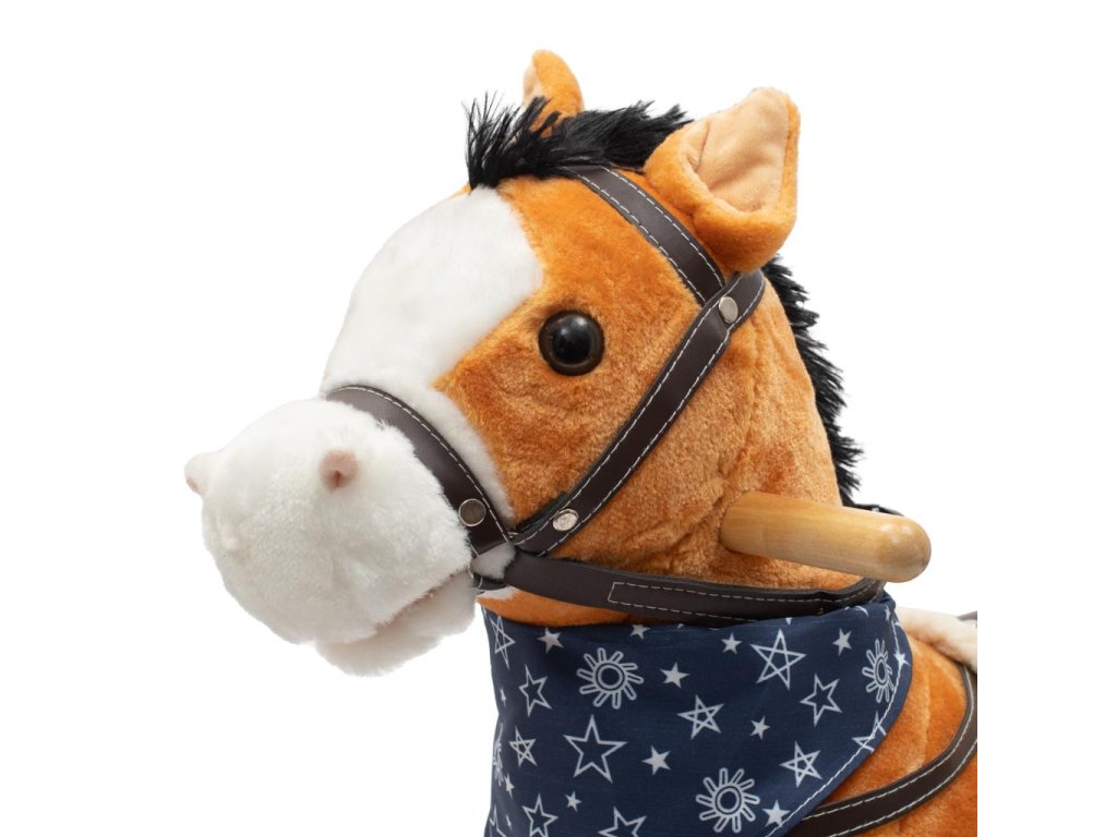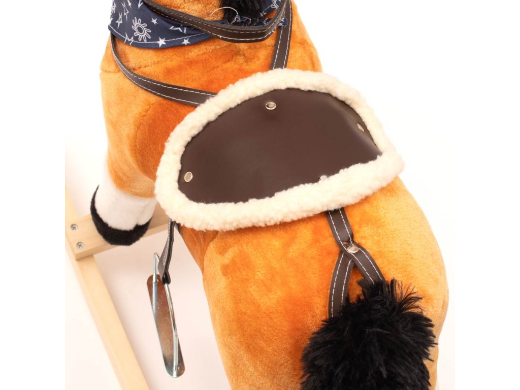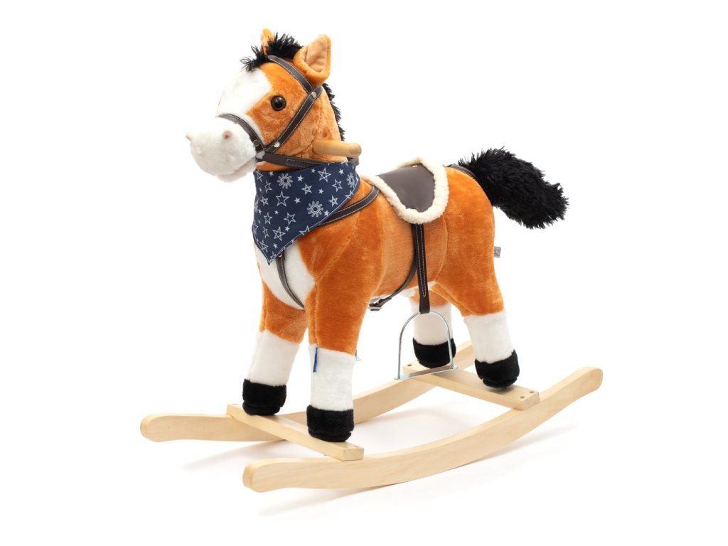 Měkoučký houpací koník Baby Mix byl navržen pro děti, které mají rády dobrodružství. Vypadá jako opravdový, takže se vaše dítě bude cítit jako skutečný jezdec. Koník je vyroben z měkkého plyše, kolem krku má ozdobný šátek a je vybaven dřevěnými houpacími lištami, jejichž profil chrání dítě před převrácením. Pohodlné sedlo, pevná uzda, kovové třmeny, dřevěné rukojeti a stabilní houpací lišty zajistí vašim kovbojům ještě větší stabilitu a pohodlí během houpání. Je vyroben z měkkého plyšového materiálu, pevné dřevěné lišty nebo rukojeti lze snadno odšroubovat. Po stisknutí tlačítek na ouškách koník vrtí ocáskem, hýbe tlamičkou, ozvou se zvuky cvalu, koník zařehtá a zazpívá kovbojskou písničku. Tři potřebné baterie AA 1,5 V se vkládají do pouzdra umístěného na bříšku koníka a nejsou součástí balení. Během houpání se dítě učí koordinovat pohyby svého těla s koníkem, což zlepšuje celkovou rovnováhu a motoriku dítěte.