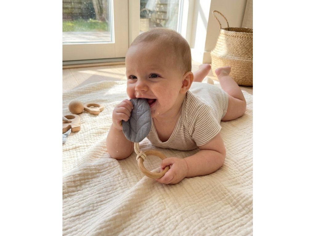 Kousátko s mušelínovou plenou je ideální sada, když se dítěti prořezávají zoubky. Kousátko je vyrobeno z bukového dřeva šetrného ke středu a měkké mušelínové látky. Zcela bezpečné pro děti přináší uklidňující úlevu při prořezávání zoubků. Kousátko lze použít také jako hračku pro miminka. Kousátko se dokonale hodí k našim dalším mušelínovým výrobkům a vytváří tak krásnou sadu, kterou lze darovat na dětskou oslavu.