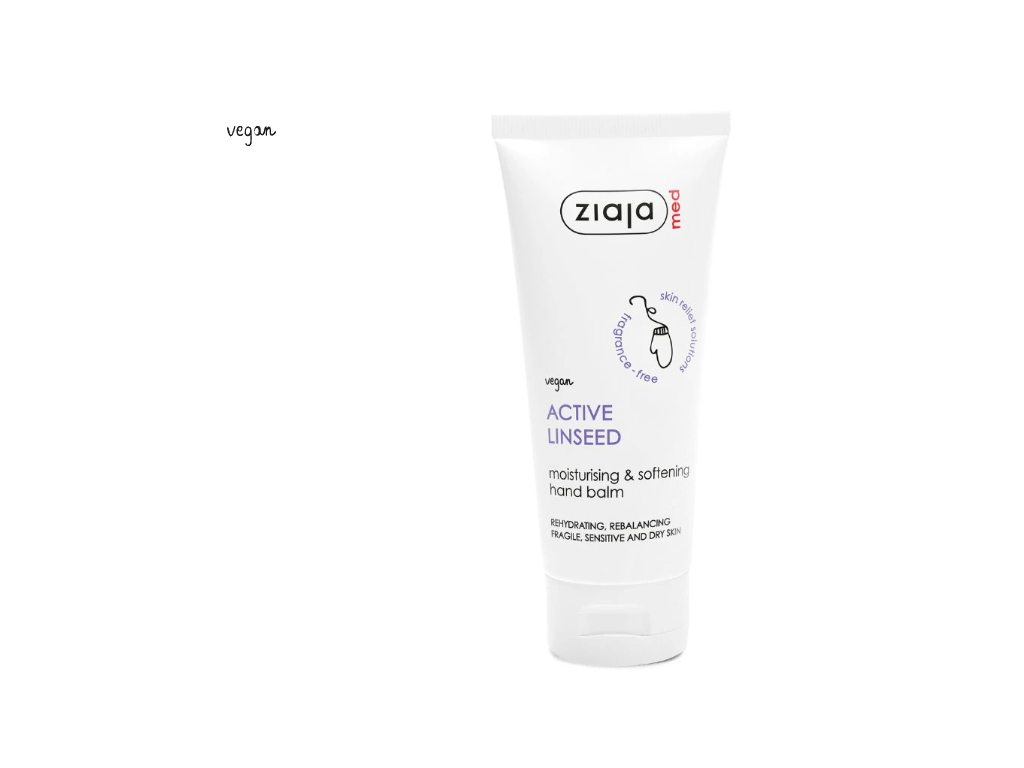 Kúra po ošetřeních estetické medicíny, vysušená šupinatá pokožka a pokožka náchylná k alergii. Ochranný krém-balzám na ruce bez vůně. Na bázi certifikovaného lněného hydrolyzátu bohatého na aktivní peptidoglykany a polysacharidy. Snadno se roztírá a vytváří ochrannou a zklidňující vrstvu i na podrážděné pokožce mezi prsty. Účinky potvrzené dermatologickými testy na problematické, šupinaté pokožce.