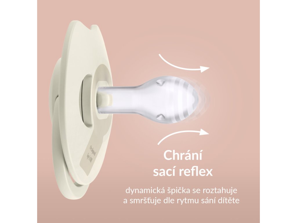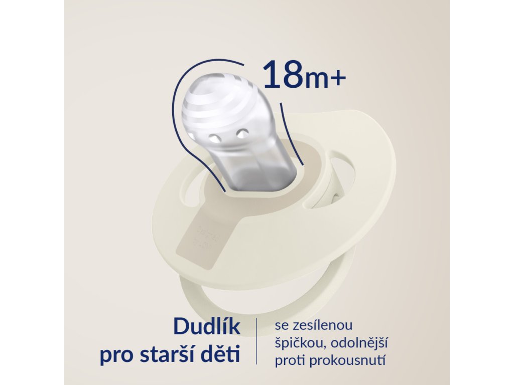 Dynamický dudlík LOVI z kolekce PRIME je bezpečný pro sací reflex a nenarušuje vývoj řeči a skusu*.Dynamický dudlík se díky unikátní konstrukci ze silikonu různé tloušťky natahuje a stahuje podle rytmu sání dítěte. Díky tomu chrání jeho sací reflex a nemá nepříznivý vliv na kojení. Symetrický tvar špičky vychází z tvaru bradavky naplněné mlékem, která poskytuje miminku známý pocit podobný pocitu z prsu.Štítek dudlíku je speciálně vytvarovaný pro usnadnění dýchání nosem a polykání slin, stejně jako u prsou. Tvarovaný štítek co nejméně přilne k pokožce dítěte, což usnadňuje volné proudění vzduchu a snižuje tak riziko podráždění pokožky. Dynamický dudlík LOVI PRIME navíc nenarušuje vývoj řeči a kousání*. Špička je zploštělá a krk je tak tenký, že umožňuje dítěti volně zavírat ústa a správně pracovat dásněmi při sání a poskytuje dostatek prostoru v ústech pro práci jazyka, což snižuje riziko malokluze a vad řeči *. Dudlík je lehký, nezatěžuje dětská ústa. Špička je vyrobena ze silikonu, takže se při používání v ústech dítěte nedeformuje. Dudlík LOVI PRIME má atraktivní, módní design - je perfektním doplňkem dětské výbavy, barvy dudlíku jsou v souladu s nejnovějšími trendy. *za předpokladu dodržení ortodontických a neurologopedických doporučení.Vhodné pro děti od 18 měsíců.VYBERTE SI SPRÁVNOU VELIKOST PRIME DUDLÍKUVelikost sací části je přizpůsobena věku a fázi vývoje dítěte, liší se od velikostí sacích částí u standardních dudlíků LOVI.DYNAMICKÝ DUDLÍKNenarušuje sací reflex a přirozený vývoj řeči a skusu dítěte**za předpokladu dodržení ortodontických a logopedických doporučeníCHRÁNÍ SACÍ REFLEXDynamická špička se roztahuje a smršťuje dle rytmu sání dítěte.BEZPEČENÝ PRO KOJENÍSymetrická špička vytvořena dle tvaru bradavky naplněné mlékem, poskytuje miminku podobný pocit jako na prsu maminky.VOLNÉ DÝCHÁNÍ NOSEM Profilovaný štítek s výřezem usnadňuje dýchání nosem a polykání slin, tak jak je tomu u prsou.BEZPEČNÉ PRO VÝVOJ SKUSU A ŘEČIZploštělá sací část umožňují dítěti volně zavřít ústa a správně pracovat dásněmi.NEDEFORMUJE SE V ÚSTECHŠpička je vyrobena z odolného silikonu, který se během používání nedeformuje v ústech dítěte.NEZATĚŽUJE SKUS DÍTĚTEVelmi lehký dudlík, nezatěžuje skus dítěte a minimalizuje riziko vzniku malokluze.JEMNÝ K POKOŽCEŠtítek se dotýká pokožky minimálně, což umožňuje volné proudění vzduchu a snižuje riziko podráždění pokožky.ANTIALERGICKÝJemný silikon je neutrální materiál, který nezpůsobuje alergickou reakci.HARMONICKÝ DESIGNČistý design s důrazem na detail.DUDLÍK PRO 18m+Se zesílenou špičkou, odolný proti prokousnutí.V setu:2ks dynamických dudlíků LOVIsterilizační pouzdro pro hygienické uchovávání a dezinfekci dudlíkuNávod k použití: Před prvním použitím dudlíky vařte ve vroucí vodě po dobu 5 minut. Poté po vychladnutí vymačkejte zbylou vodu. To je nezbytné pro zajištění hygieny. Před každým použitím dudlík omyjte teplou vodou. Přelijte vroucí vodou. Dudlíky lze také dezinfikovat v parních/elektrických sterilizátorech nebo v přiloženém dezinfekčním pouzdře podle dodaného návodu. K čištění nepoužívejte antibakteriální nebo abrazivní čisticí prostředky. Příliš vysoké koncentrace čisticích prostředků mohou poškodit plastové díly. Nemyjte dudlík v myčce na nádobí. Neponořujte dudlík do žádné sladké tekutiny nebo léků, protože to může způsobit zubní kaz. Pro zajištění pohodlí a bezpečí vašeho miminka, vyměňujte dudlík každé 1-2 měsíce. Pokud si dítě vloží celý dudlík do úst, NEPROPADEJTE PANICE. Dudlík je navržen tak, aby jej dítě nemohlo spolknout. Jakmile si všimnete, že vaše dítě vložilo do úst celý dudlík, vyjměte ho co nejšetrněji. Uchovávejte dudlík v čistém, suchém a uzavřeném pouzdře. Doporučujeme od dudlíku dítě odstavit do 3 let. Pro bezpečnost vašeho dítěte.VAROVÁNÍ!Před každým použitím pečlivě zkontrolujte. Zatáhněte za dudlík všemi směry. Při prvních známkách poškození nebo oslabení materiálu výrobek vyhoďte. Používejte pouze speciální stuhy nebo řetízky na dudlík testované podle EN 12586. Nikdy na dudlík nepřipevňujte jiné pásky nebo šňůrky, mohlo by dojít k uškrcení dítěte. Nenechávejte dudlík na přímém slunci nebo v blízkosti zdroje tepla. Nenechávejte dudlík ve sterilizačním roztoku déle, než je doporučeno, mohlo by dojít k poškození dudlíku. Uschovejte si návod k použití, protože obsahuje důležité informace. Kód šarže je na obalu.Návod k dezinfekci dudlíku v dezinfekčním pouzdře:UPOZORNĚNÍ! Nedodržení tohoto pokynu může vést k popálení nebo poškození výrobku a/nebo mikrovlnné trouby. • Před použitím vždy zkontrolujte hladinu vody v dezinfekčním pouzdře. • V pouzdře lze dezinfikovat dva dudlíky najednou. • Tento výrobek není hračka. Používejte a skladujte výrobek mimo dosah dětí. POUŽITÍ 1. Před prvním a každým dalším použitím umyjte pouzdro v teplé vodě s jemným saponátem, důkladně opláchněte. 2. Na dno nalijte 25 ml převařené vody. DŮLEŽITÉ Přidání příliš malého množství vody může pouzdro poškodit. Přidání příliš velkého množství vody může způsobit nevhodnou dezinfekci. 3. Vložte dudlíky do pouzdra. 4. Nasaďte víko a pevně zavřete. 5. Uzavřené pouzdro vložte do mikrovlnné trouby. 6. Pro mikrovlnné trouby 750-1000 W je doba dezinfekce 2 minuty. Nepřekračujte dobu dezinfekce. UPOZORNĚNÍ! • Pouzdro musí být během dezinfekce umístěno na rovném povrchu. • Před vyjmutím z mikrovlnné trouby vždy počkejte alespoň 5 minu