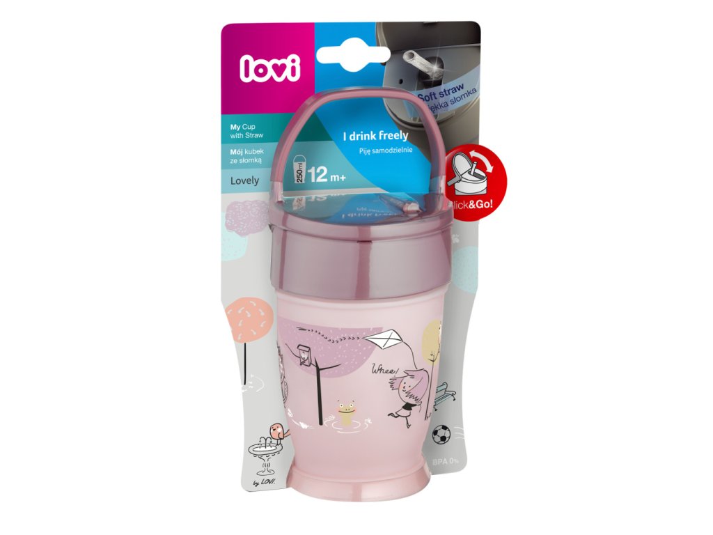 LOVI Hrníček se slámkou Click&Go umožní dítěti jednoduše: