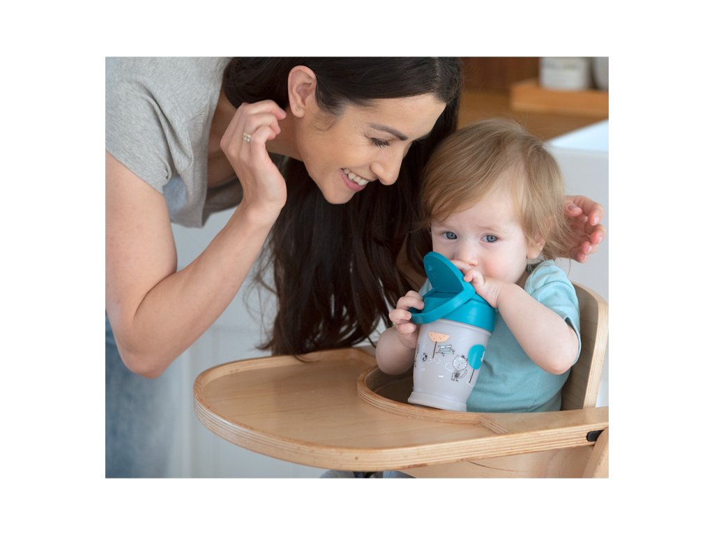 Systém Click&Go - charakteristické kliknutí je známkou toho, že je hrníček dobře zavřený a dítě jej může bezpečně držet. Uzávěr je natolik silný, aby umožnil dítěti bez obav držet hrníček i při pohybu.