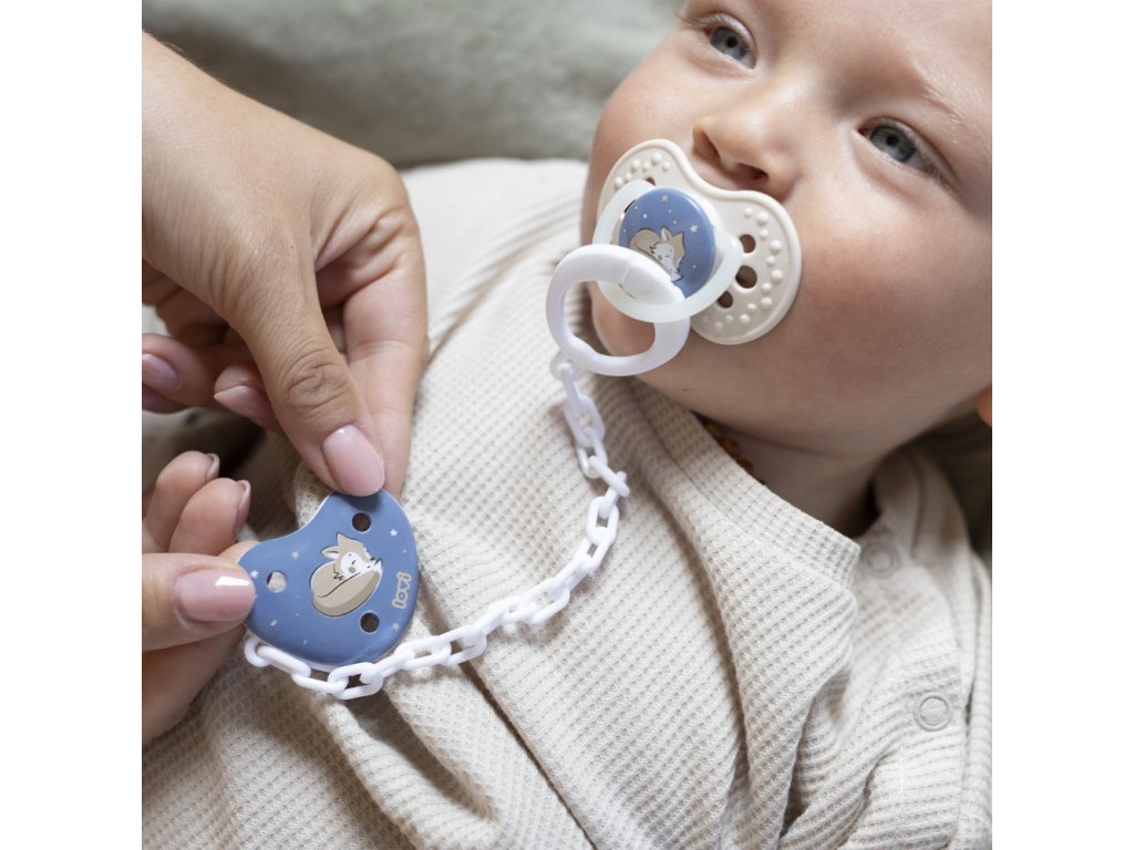 - Řetízek na dudlík- chrání dudlík před ušpiněním nebo ztrátou