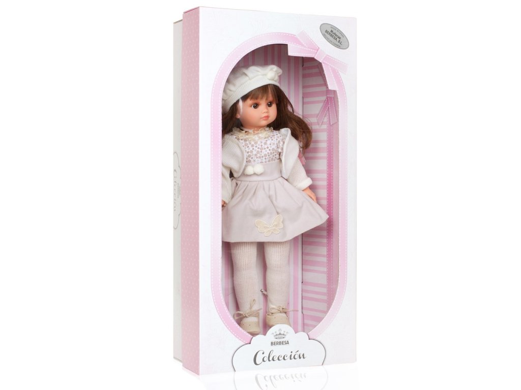 Luxusní španělská dětská panenka-holčička Berbesa Roberta. Panenka má vinylové tělíčko, ručičky i nožičky. Tato nádherně roztomilá panenka-malá holčička vypadá skutečně jako živá. Panenka má hnědé oči, řasy a nádherné tmavé dlouhé vlásky. Součástí panenky je pletený svetřík, tričko, sukýnka, baret, punčocháčky a botičky. Obleček se dá sundat. Tělíčko panenky má jemnou vůni po vanilce. Délka panenky je cca 40 cm. Vhodné pro děti od 3 let. Při výrobě jsou používány výhradně kvalitní materiály.Doplňkové parametry