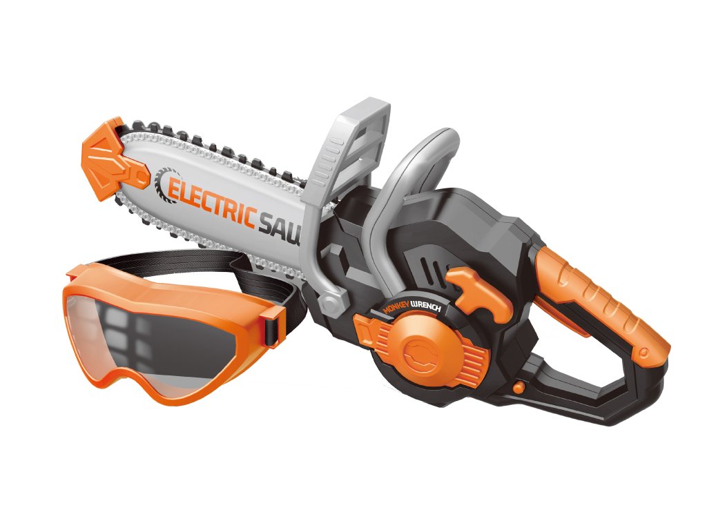 Motorová pila a ochranné brýle. Velikost pily 34 cm. 3xAA nejsou součástí. Vydává zvukové efekty. Aktivace tlačítkem na levé straně.Doplňkové parametry