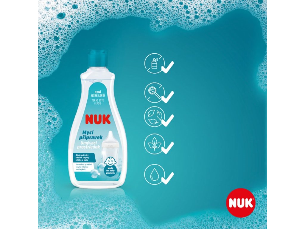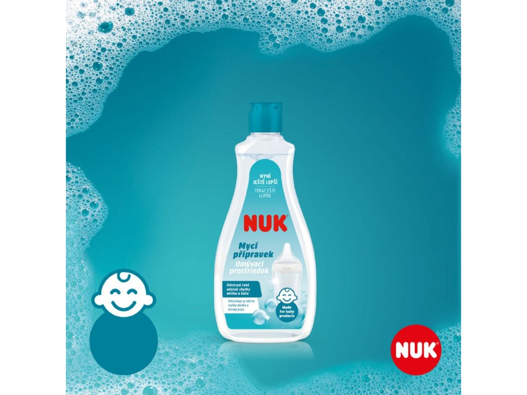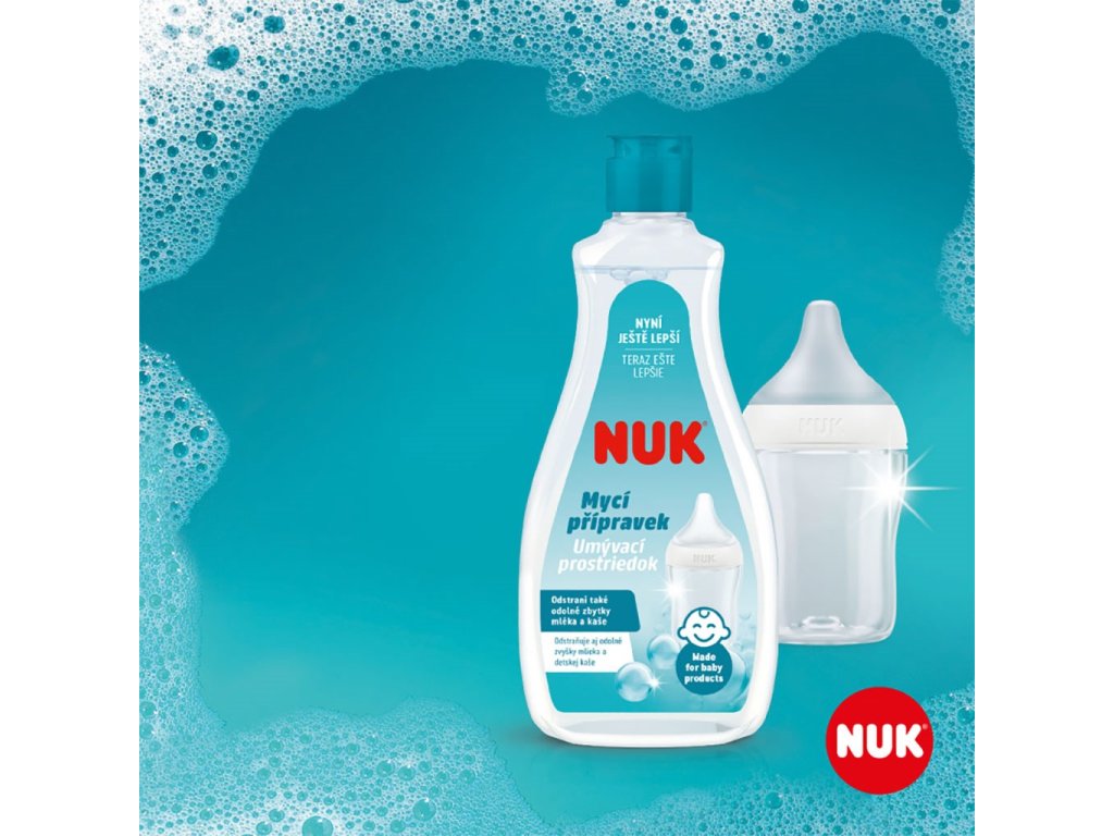 Mycí prostředek na láhve a savičky NUK - 500ml. Speciální tekutý mycí prostředek na dětské výrobky. Charakteristika:- Šetrně, bezpečně a spolehlivě odstraňuje zbytky mléka a dětské výživy, nyní s ještě lepším a účinnějším složením