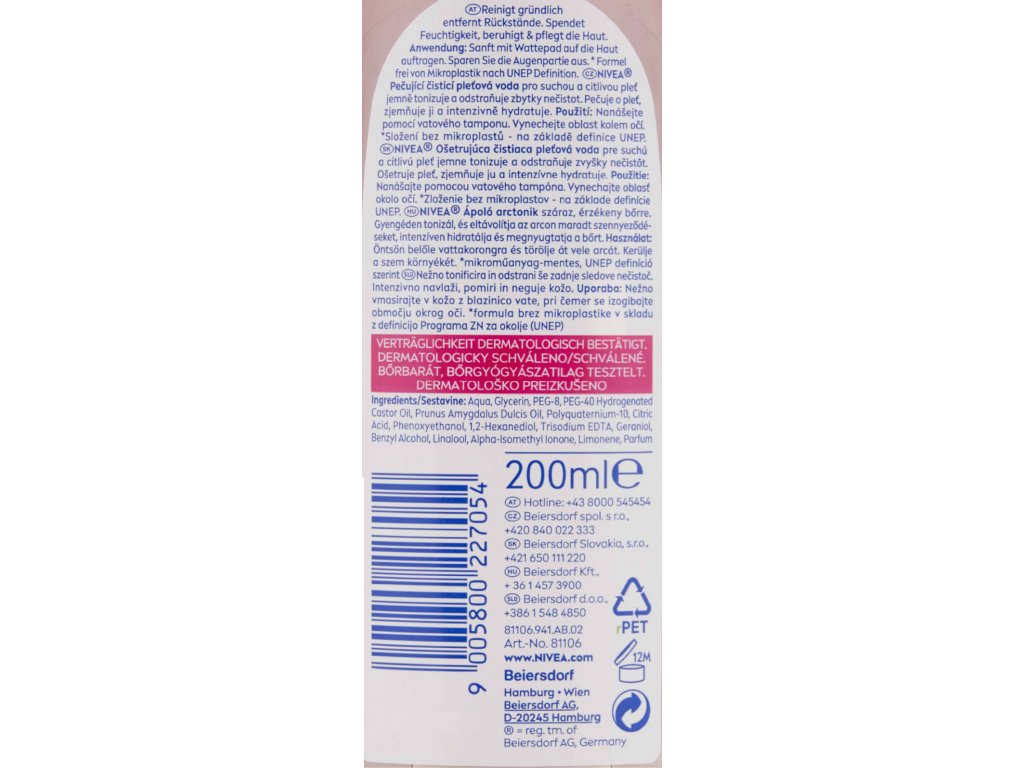 Nivea čistící pleťová voda 200 ml Suchá a citlivá pleť