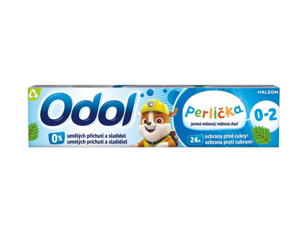Zubní pasta pro děti s fluoridem s mentolovou příchutí. Zubní pasta Odol Perlička modrá je určena pro děti od 3 let.
