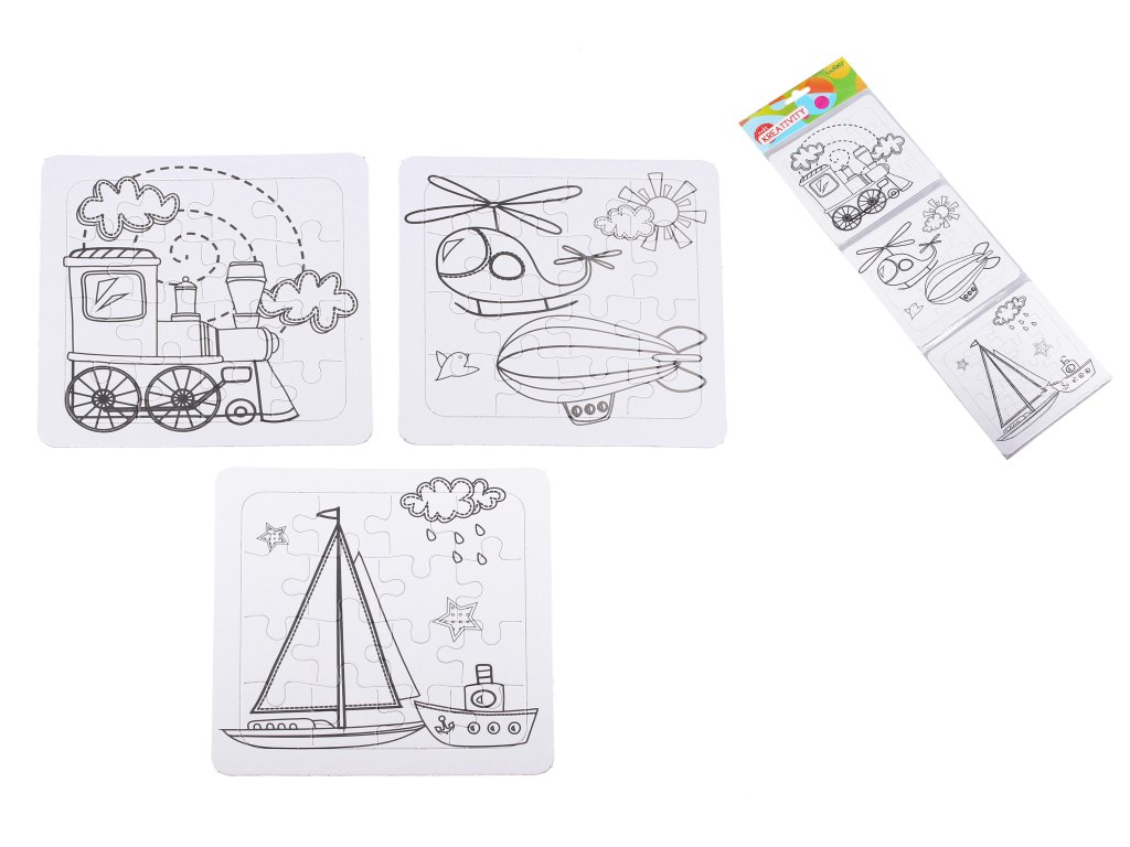 Balení = 3 puzzle k vymalování Rozměry balení = 43x14 cm Různé motivyDoplňkové parametry