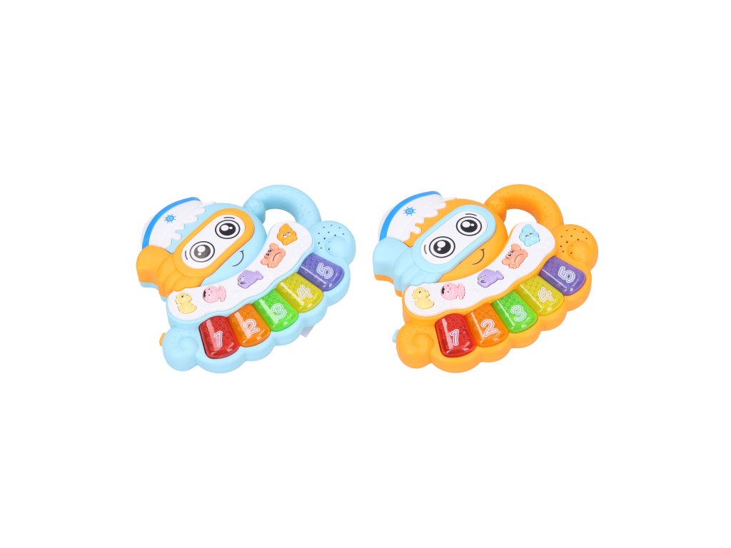 Barevné piano ve tvaru chobotničky se zvukovými a světelnými efekty bude zábavnou formou u dětí rozvíjet cit pro hudbu a jejich motoriku. Rozměry: 17 x 14 cm Doporučený věk: od 18 měsíců Baterie 3xAA nejsou součástí balení.