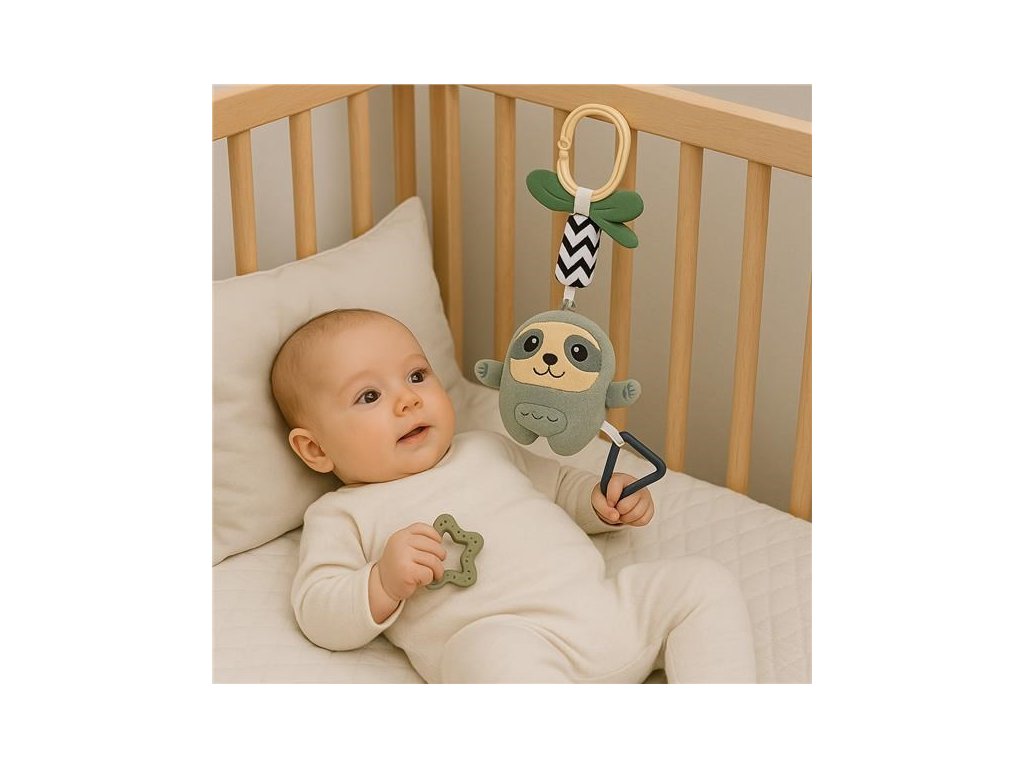 Hračka má originální design lenocha, který vzbuzuje zvědavost a vybízí ke hře. Je vybavena hrací skříňkou, která vydává zvuky a klipem, který umožňuje hračku snadno připevnit ke kočárku, autosedačce nebo postýlce. Tato hračka poskytuje nezapomenutelné chvíle zábavy a radosti.
