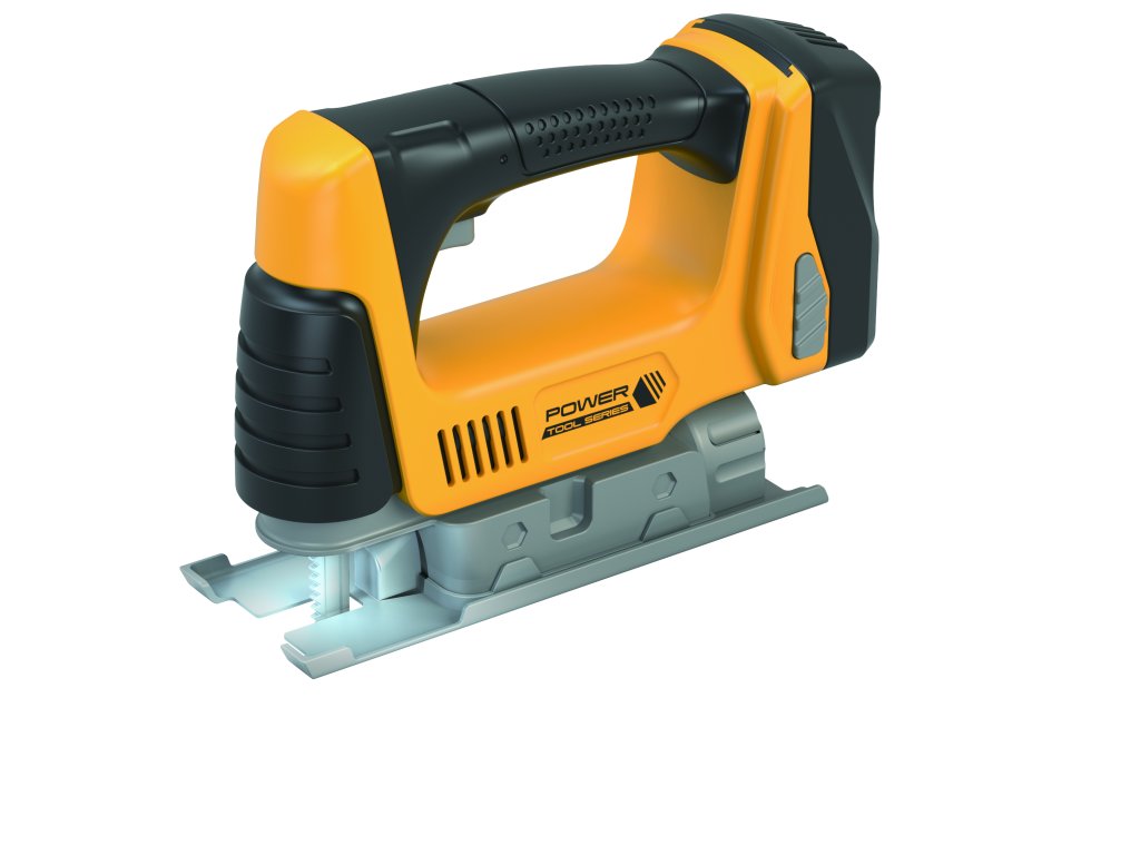 Přímočará pila. Rozměry 19,5×6,5×18 cm. Světelné efekty. 3xAAA baterie součástí. Odpojitelná bateriový modul.Doplňkové parametry