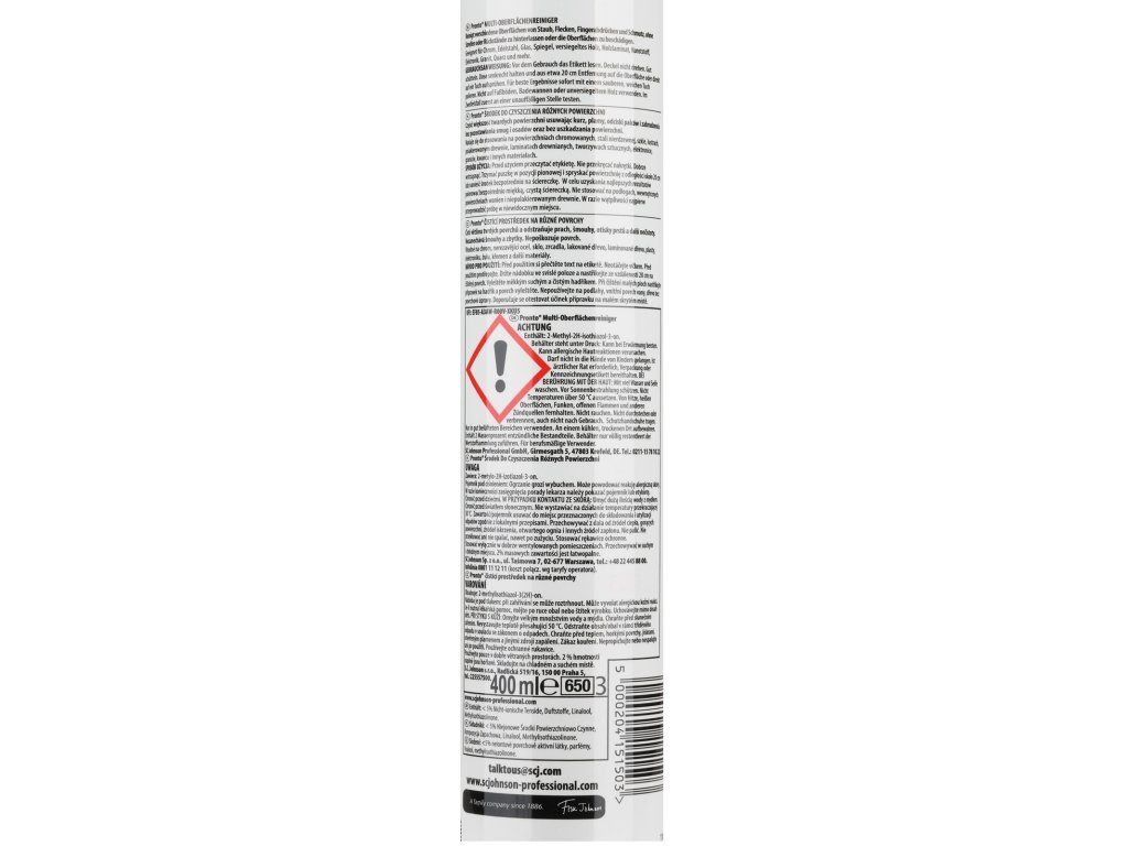 | PRONTO Multi Surface Cleaner: | 400 ml |