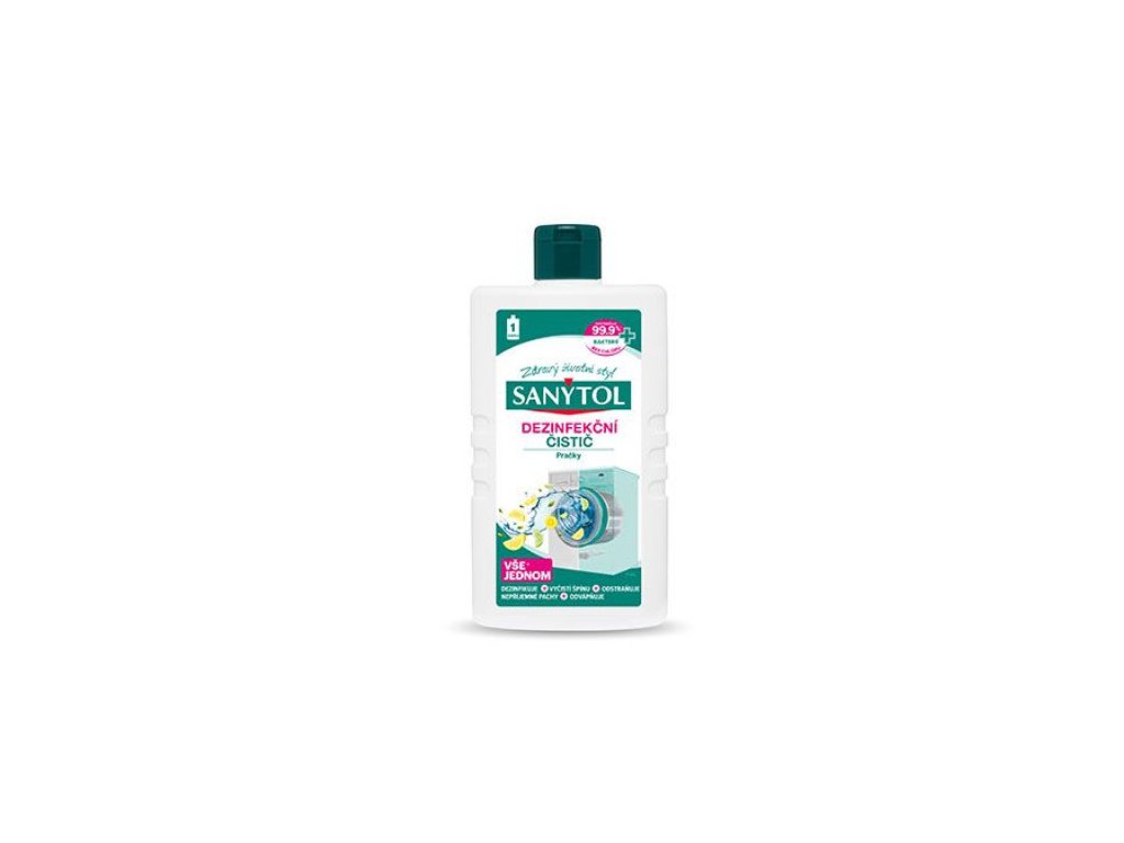 Sanytol je dezinfekční čistič bez chlóru, který odstraní 99,9 % všech bakterií. Sanytol zvládá čistit a dezinfikovat pračku, eliminovat zápach a bakterie a odstraňuje jak nečistoty, tak i vodní kámen. Čistič navíc pomáhá dlouhodobě zlepšovat výkon pračky. Použití Sanytolu vám zaručuje naprosto čistou a dezinfikovanou pračku, a tím i parádně čisté a svěží prádlo.