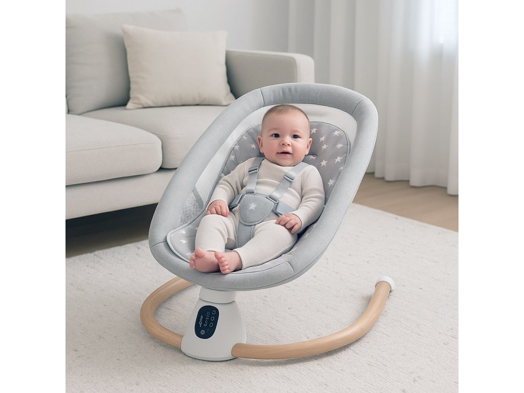 SMART lehátko New Baby má 5 rychlostí houpání, které lze přizpůsobit podle potřeb vašeho miminka, a zajistit tak nejpříjemnější zážitek. Houpání ze strany na stranu je navrženo tak, aby napodobovalo přirozené kolébání, které miminko uklidňuje.