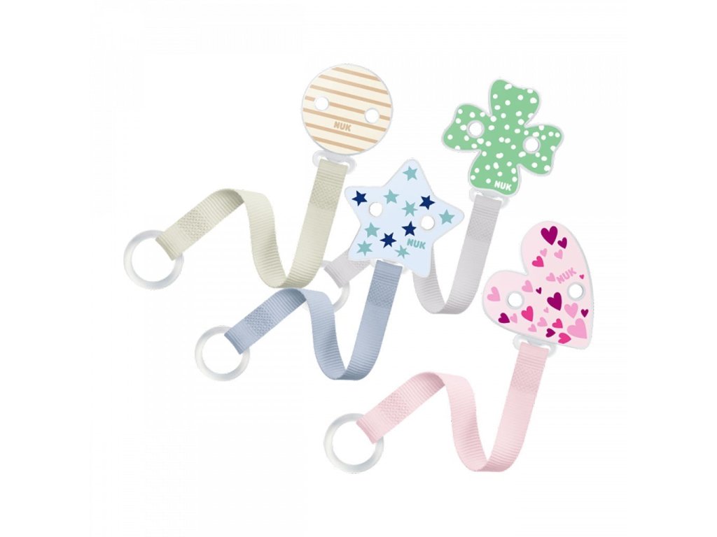 Veselá, barevná stužka na dudlík NUK s flexibilním kroužkem. Díky sponě dudlík nespadne na zem a nezašpiní se a neztratí se. Má snadné použití a je vyrobena tak, aby se dala připnout k dětskému oblečení. Určeno pro děti od prvních dnů života. Stužka je vhodná i na dudlíky bez kroužku díky natahovacímu silikonovému kroužku. Systém klipu je bez ostrých hran pro otevírání a zavírání jednou rukou.Doplňkové parametry