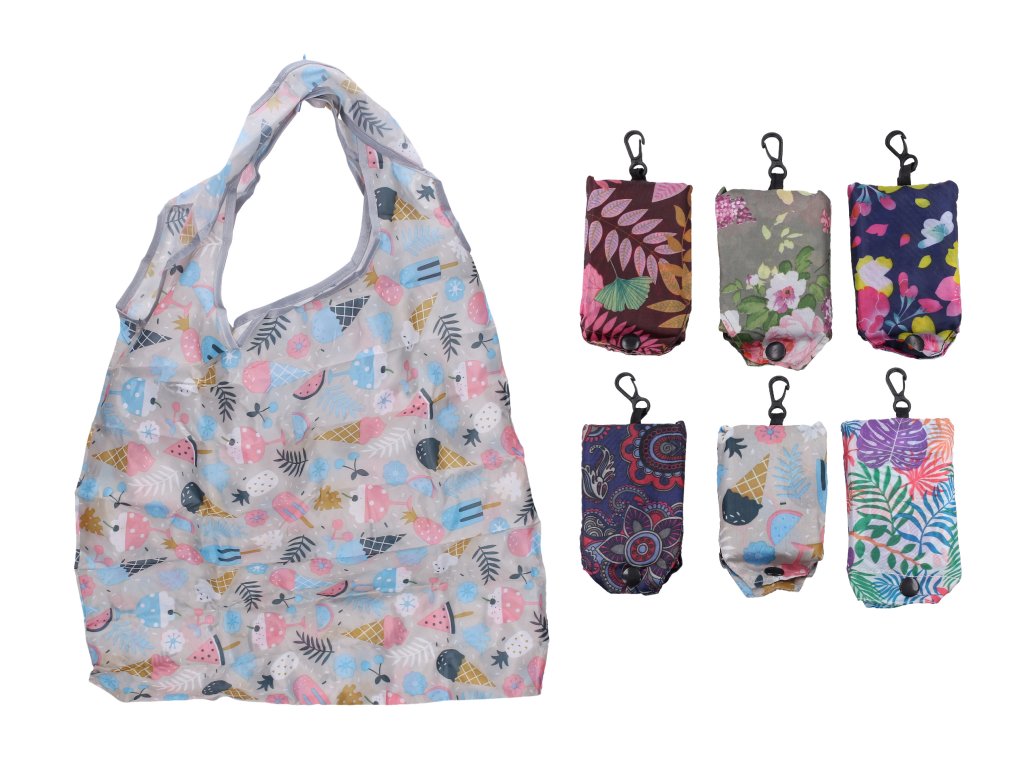 Taška je uložena v malém sáčku opatřeném karabinkou na zavěšení do kabelky ap. Tato nákupní skládací taška se Vám pohodlně vleze do kabelky a budete ji mát vždy při ruce. Velikost rozložené tašky: 35 x 37 cm ( + 15 cm ucha). Velikost složené tašky: 12 x 7 x 1 cm. Materiál 100% polyester, nosnost cca do 10 kg.Doplňkové parametry