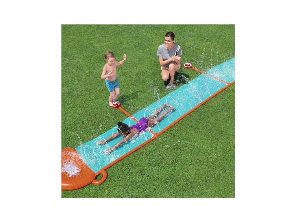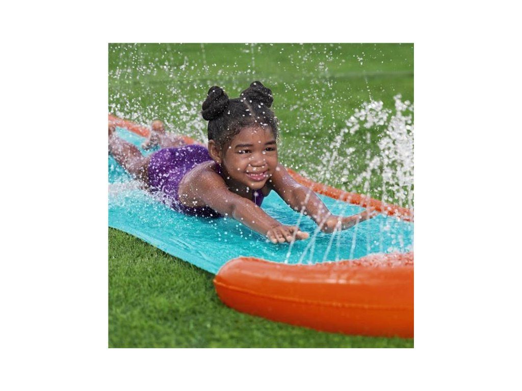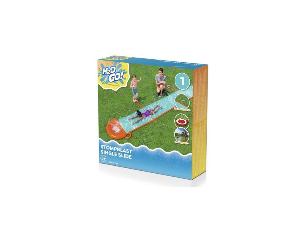 Jednoduchá skluzavka StompBlast je skvělá pro letní zábavu na zahradě. Ideální pro děti od 3 let, tato skluzavka s jedním pruhem má spršky, které se aktivují na požádání, když děti šlápnou na podložku StompBlast™, aby postříkaly kamarády při závodu do cíle. Vestavěné spršky SplashBoost pokrývají celou délku skluzavky a zajišťují cílené zvlhčení pro maximální kluzkost, stříkání a šplíchání.
