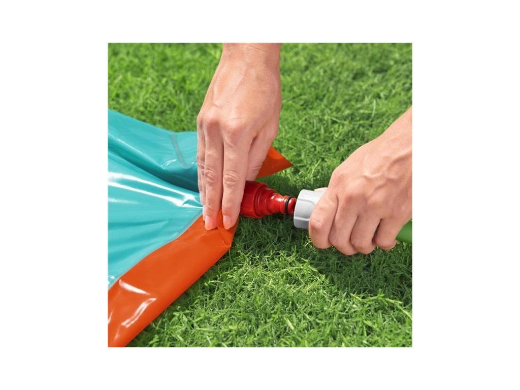 Voda stéká do bazénku na konci skluzavky a vytváří velké cákání. Děti i rodiče ocení snadnou instalaci – stačí připojit hadici. Skluzavka H2OGO! StompBlast přinese radostné klouzání po celé léto.